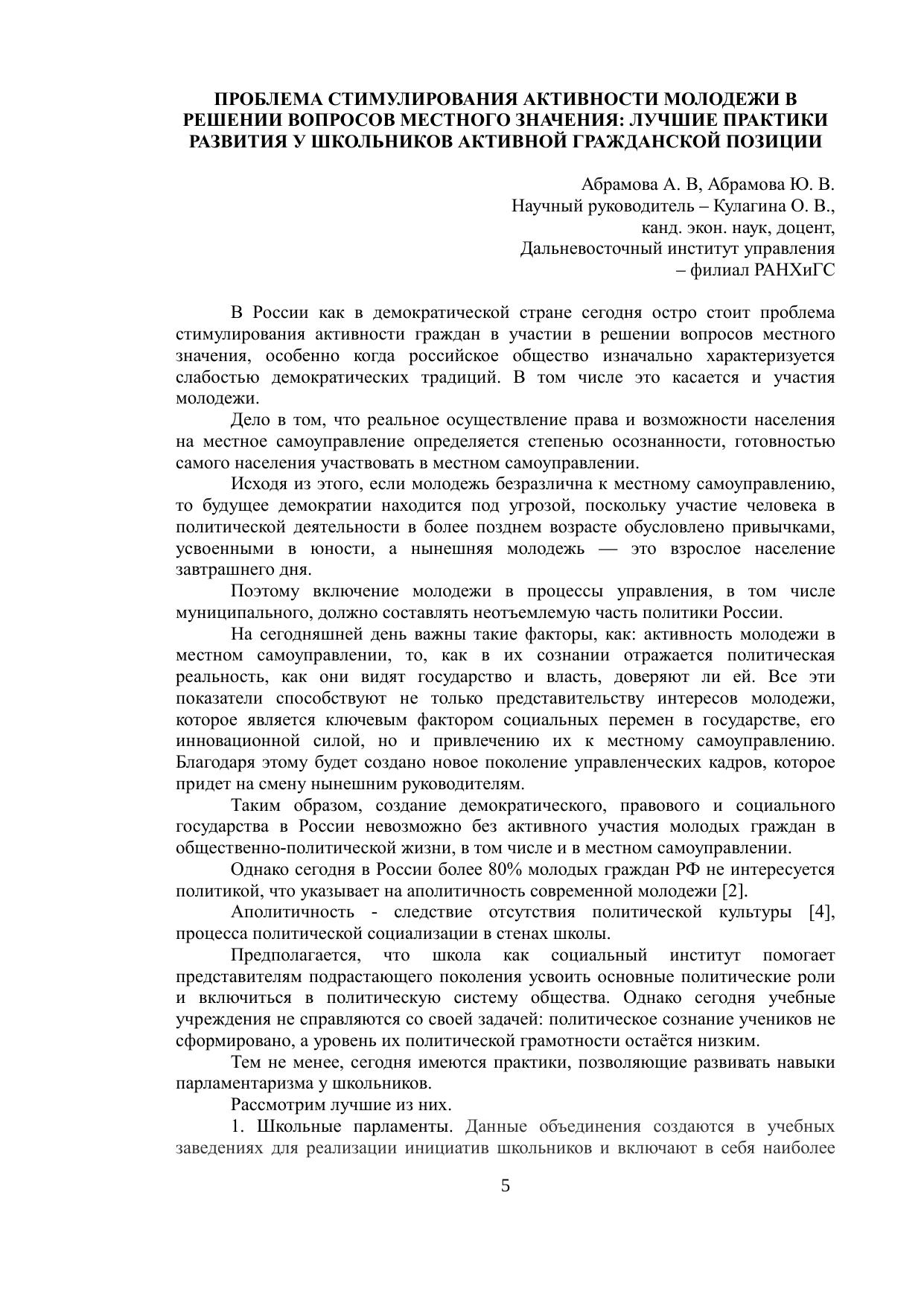 Сборник содержит работы студентов – участников юбилейной ХV Всероссийской студенческой научной конференции «Государство, общество, бизнес: основы и принципы взаимодействия», проведенной в Дальневосточном институте управления – филиале РАНХиГС 03 декабря 2021 г. Содержание статей отражает отношение студентов к вопросам взаимодействия государства, коммерческих структур и населения в различных координатах.