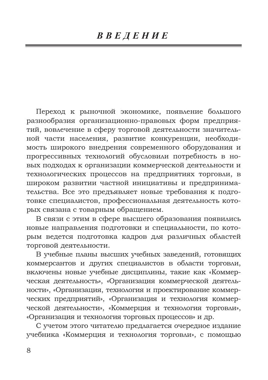 В учебнике освещаются актуальные вопросы коммерции и технологии торговли: основы построения процесса товародвижения; сущность и содержание коммерческой деятельности в торговле; коммерческая деятельность по оптовым закупкам и продаже товаров; организация и технология торговых процессов на предприятиях оптовой и розничной торговли; реклама в коммерческой деятельности; организация перевозок грузов.