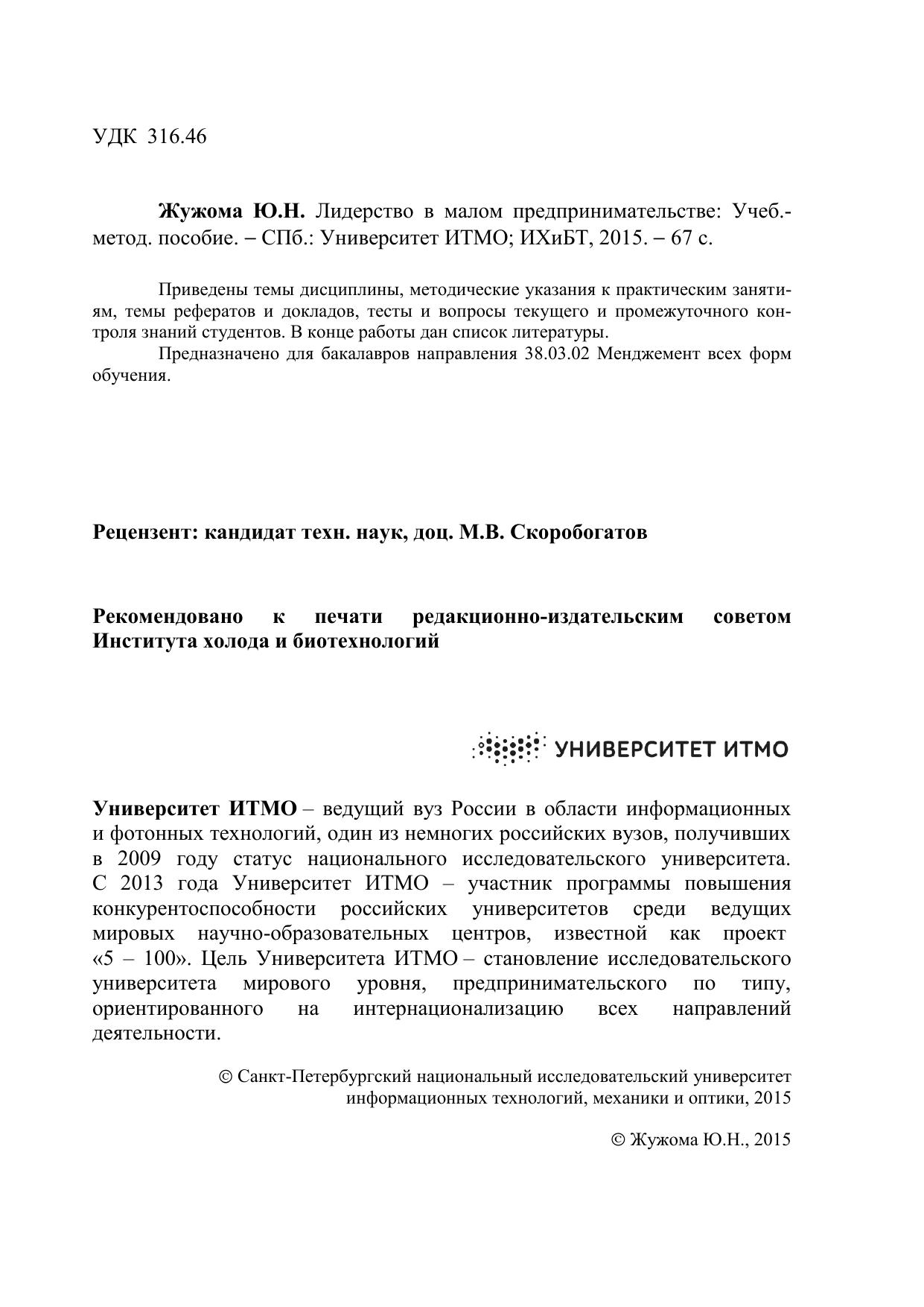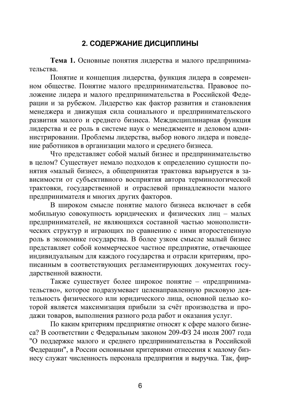 Лидерство в малом предпринимательстве: учебно-методическое пособие