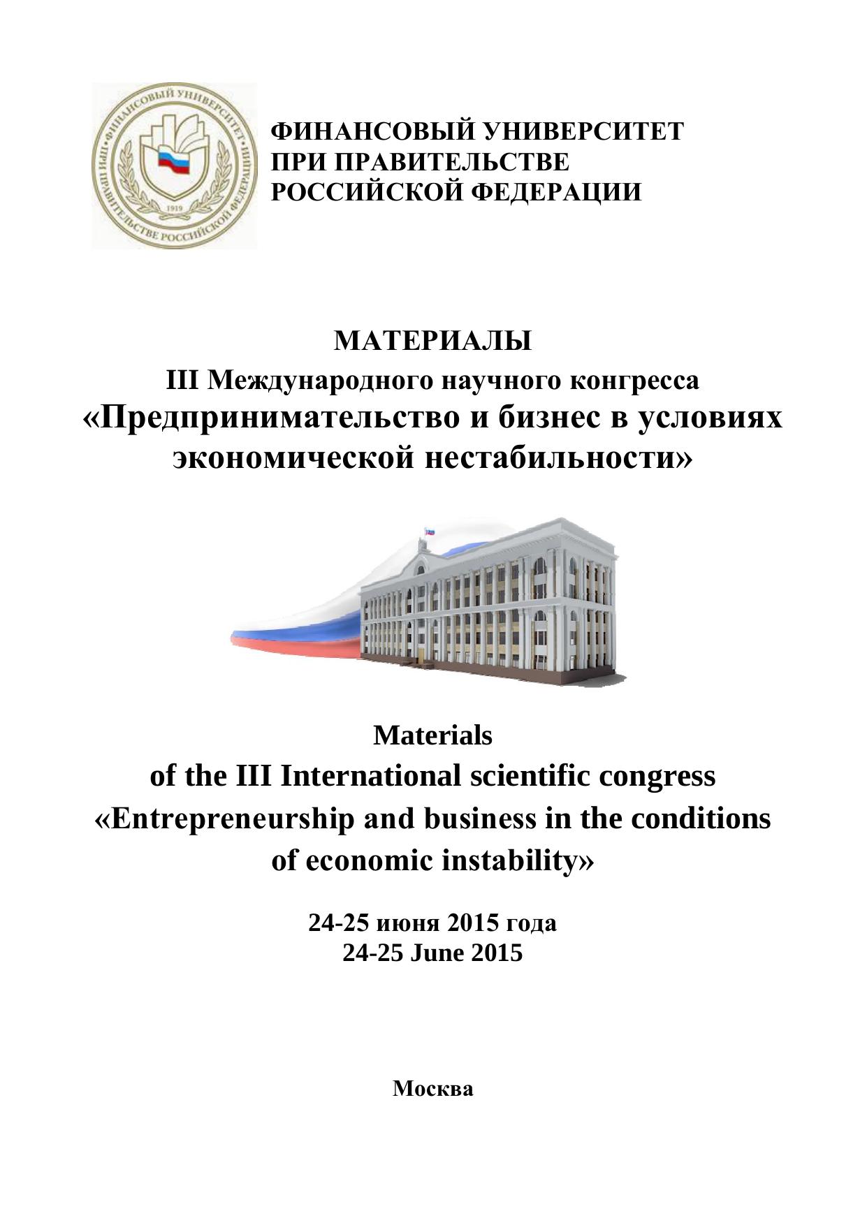 Материалы III Международного научного конгресса "Предпринимательство и бизнес в условиях экономической нестабильности"
