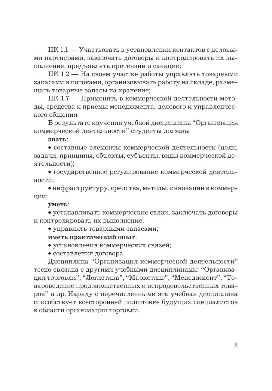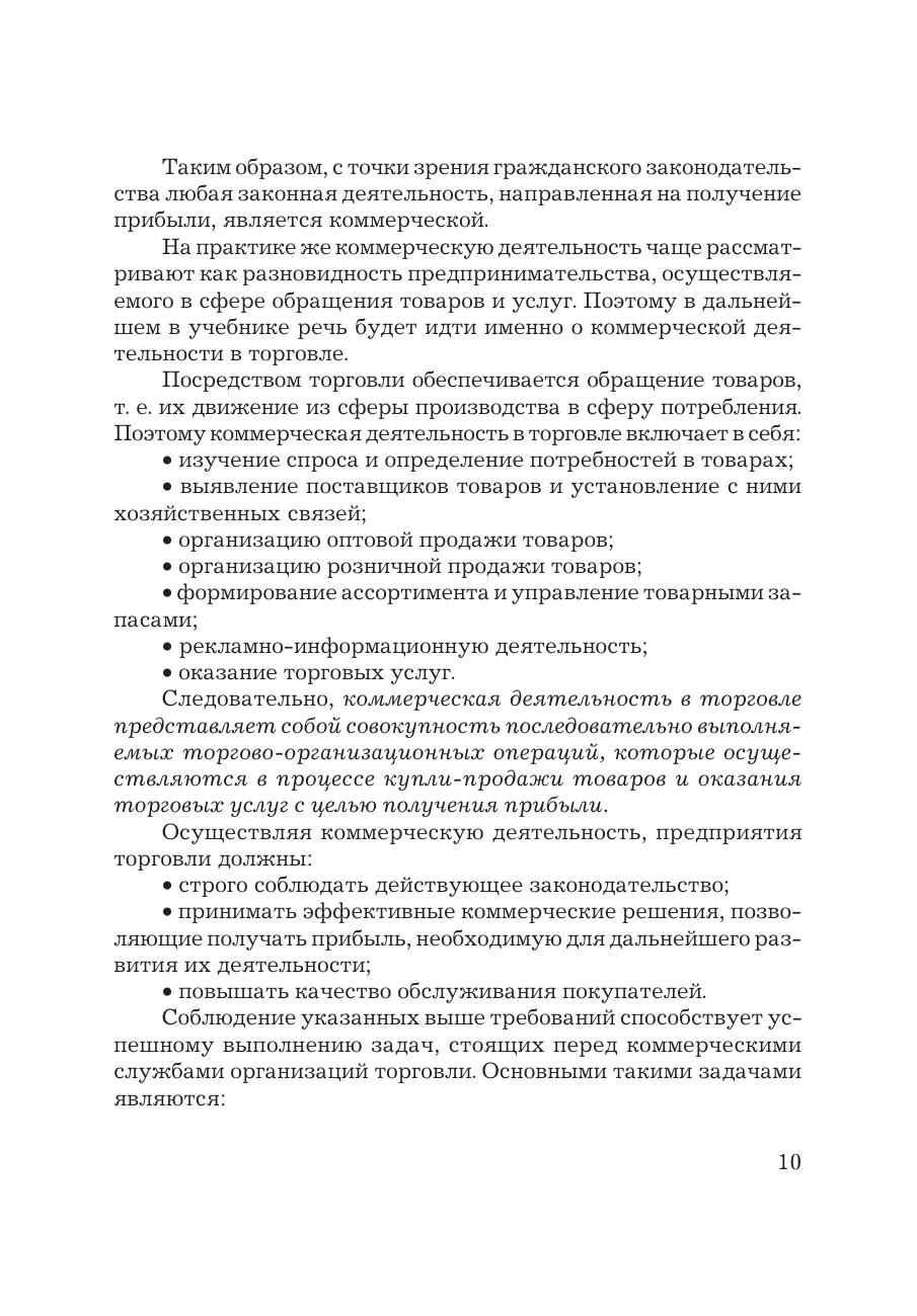 Учебник подготовлен в соответствии с ФГОС СПО по специальности 100701 "Коммерция" (по отраслям). С учетом современного опыта рассматриваются основные этапы коммерческой деятельности в торговле. Для студентов и преподавателей образовательных учреждений среднего профессионального образования, а также специалистов коммерческих служб торговых организаций, начинающих предпринимателей и слушателей школ бизнеса