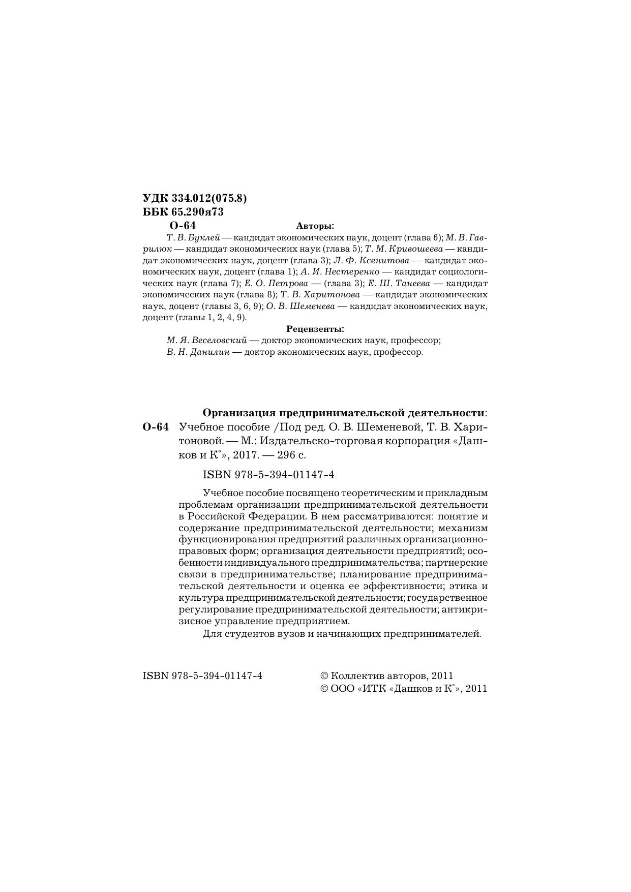 Учебное пособие посвящено теоретическим и прикладным проблемам организации предпринимательской деятельности в Российской Федерации. В нем рассматриваются: понятие и содержание предпринимательской деятельности; механизм функционирования предприятий различных организационно-правовых форм; организация деятельности предприятий; особенности индивидуального предпринимательства; партнерские связи в предпринимательстве; планирование предпринимательской деятельности и оценка ее эффективности; этика и культура предпринимательской деятельности; государственное регулирование предпринимательской деятельности; антикризисное управление предприятием. Для студентов вузов и начинающих предпринимателей.