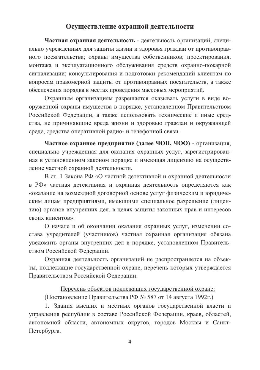 Проанализированы действующие правила осуществления и организационно-правовые основы частной охранной деятельности, уделено внимание основополагающим нормативным актам, рассмотрены должностные обязанности руководителей и сотрудников охраны. Приводятся рекомендации, применяющиеся на практике.