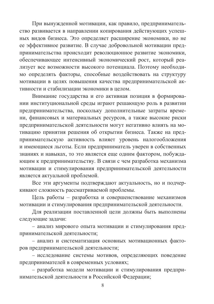 В монографии анализируется отечественный и зарубежный опыт мотивации предпринимательства, систематизируются основные мотивационные факторы, побуждающие к предпринимательской деятельности, рассматривается комплекс мер и методов стимулирования предпринимательской деятельности в современных условиях и направлений совершенствования механизмов мотивации населения к предпринимательской деятельности.