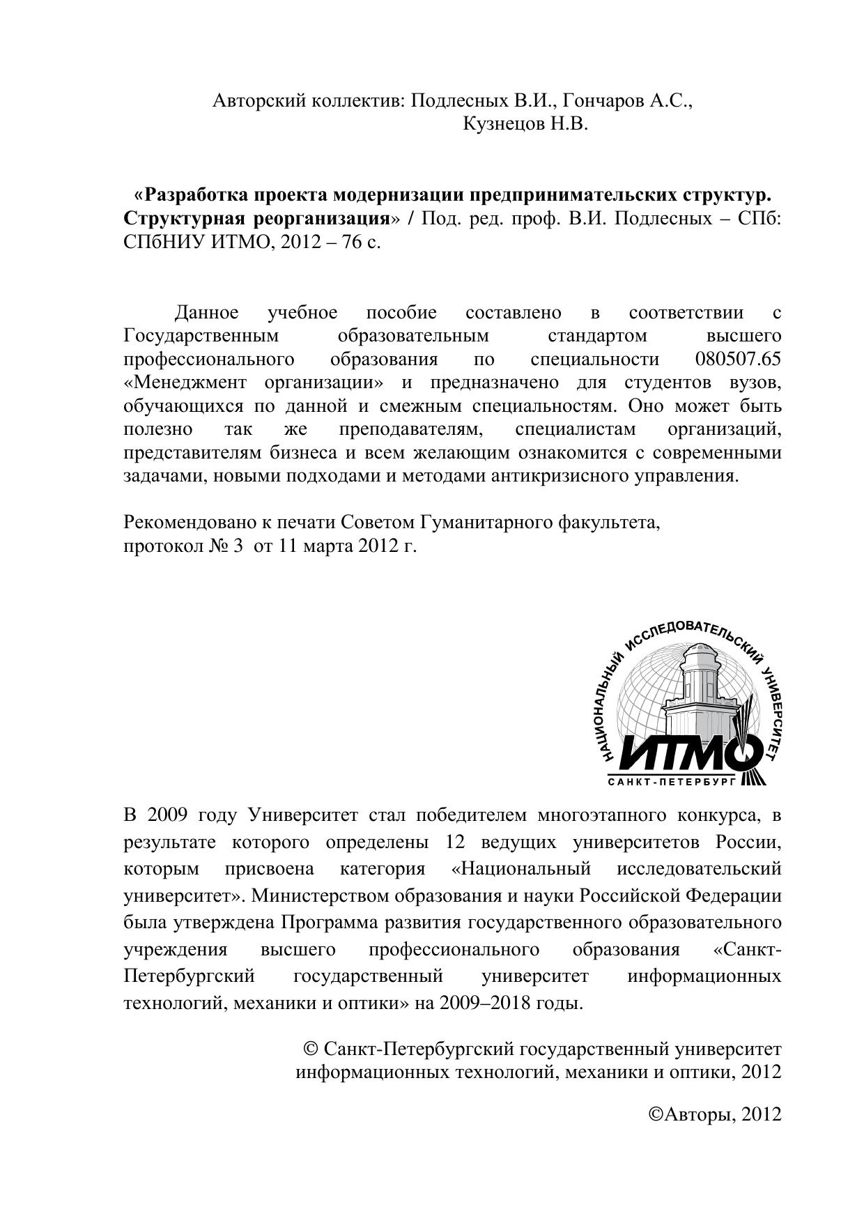 Авторы: Подлесных В.И., Гончаров А.С., Кузнецов Н.В.