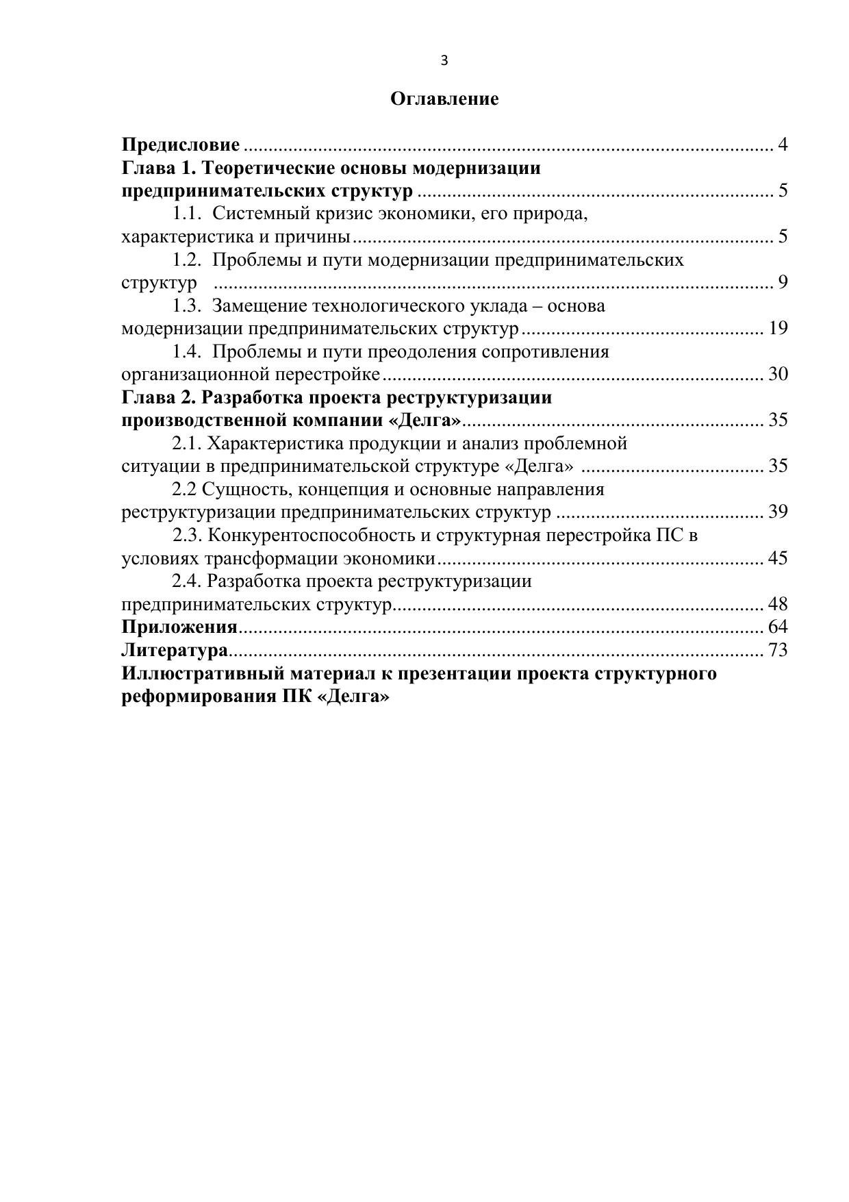 Разработка проекта модернизации предпринимательских структур. Структурная реорганизация