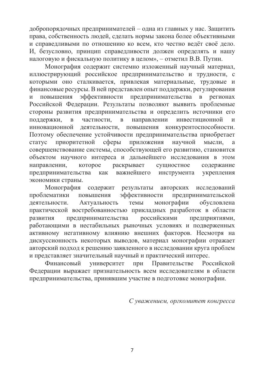 Монография ориентирована на широкий круг читателей, представителей государственного и муниципального управления, руководителей бизнес-структур, научных работников, преподавателей, аспирантов, студентов, других лиц, заинтересованных в развитии предпринимательства.