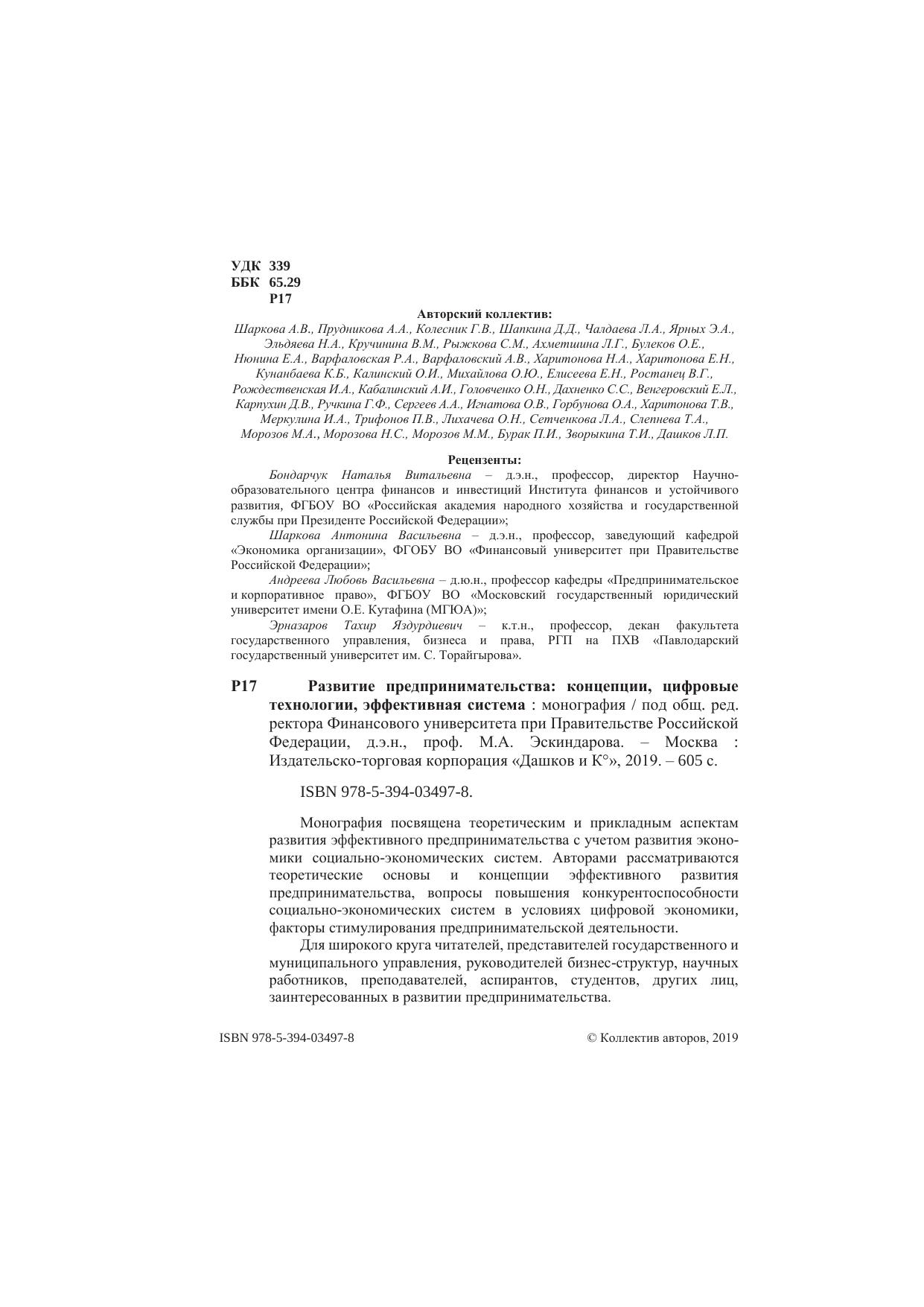 Развитие предпринимательства: концепции, цифровые технологии, эффективная система