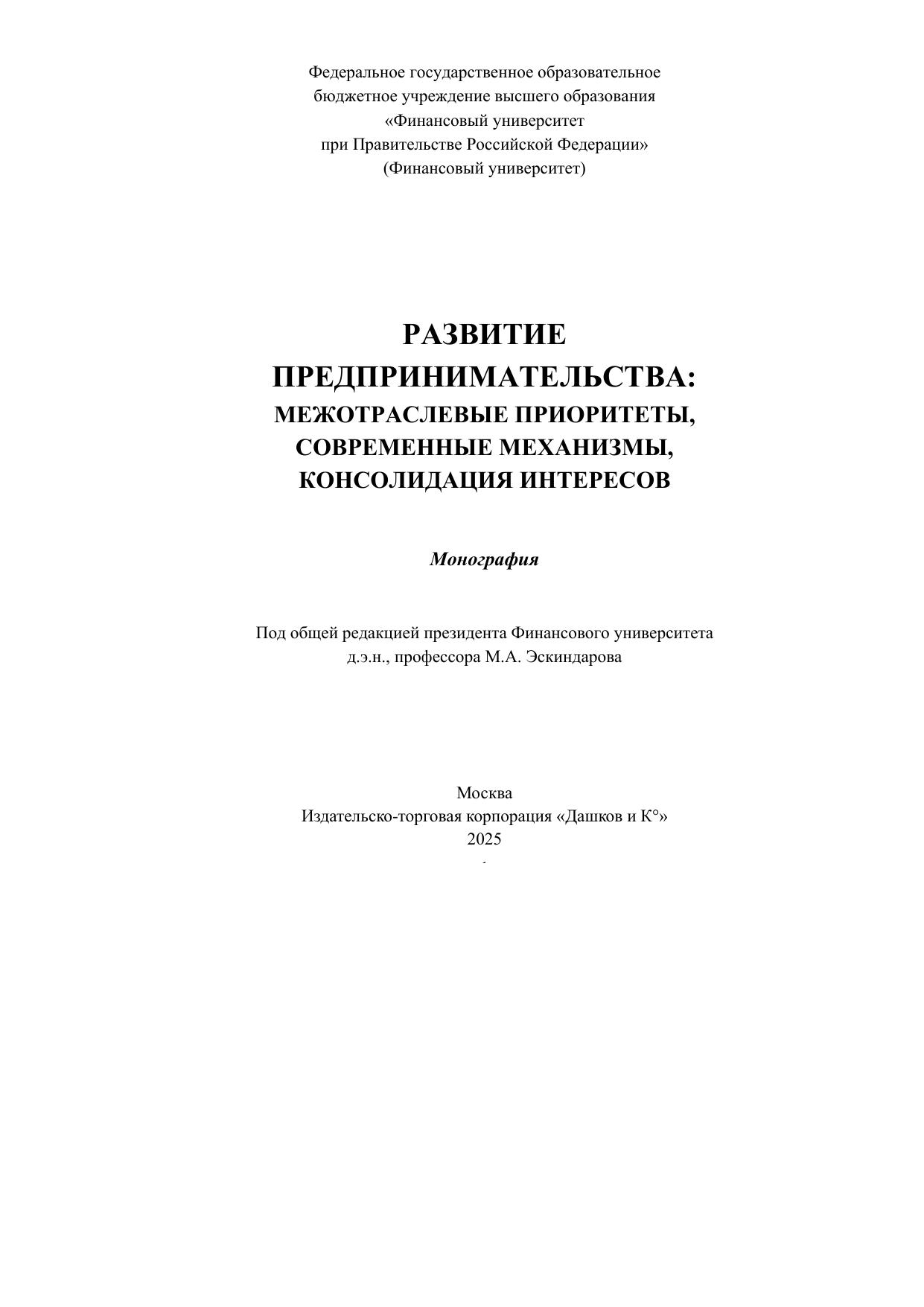 Монография содержит результаты авторского исследования проблематики повышения эффективности предпринимательской деятельности. Актуальность темы монографии обусловлена практической востребованностью прикладных разработок в области развития предпринимательства российскими предприятиями, работающими в условиях новых вызовов. Монография ориентирована на широкий круг читателей, представителей государственного и муниципального управления, руководителей бизнес-структур, научных работников, преподавателей, аспирантов, студентов, других лиц, заинтересованных в развитии предпринимательства.