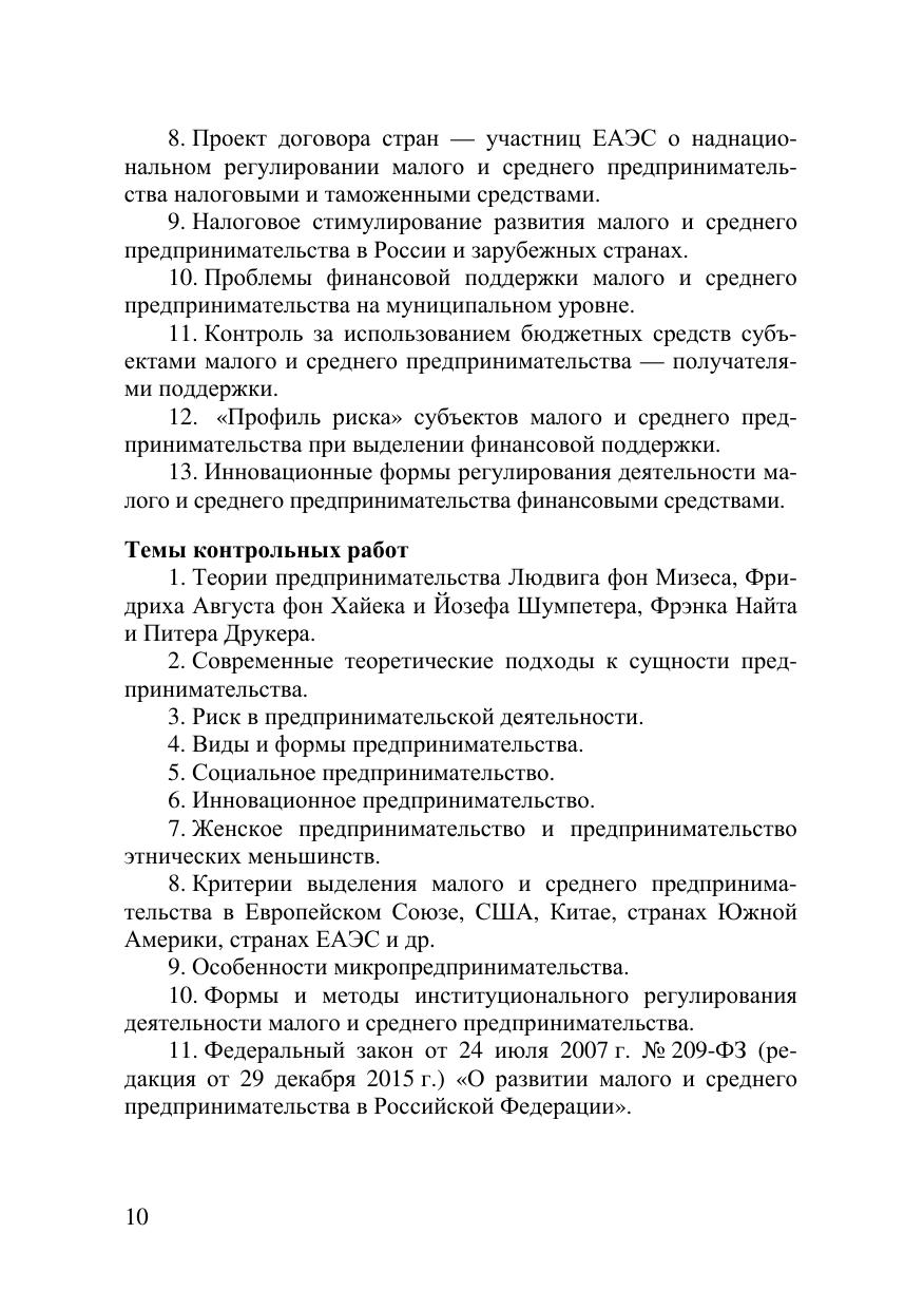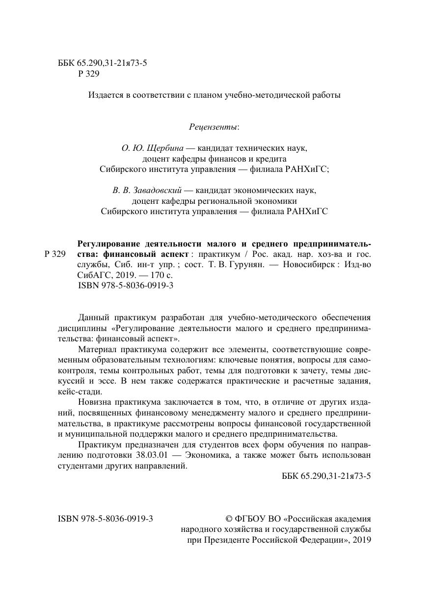 Регулирование деятельности малого и среднего предпринимательства: финансовый аспект: практикум