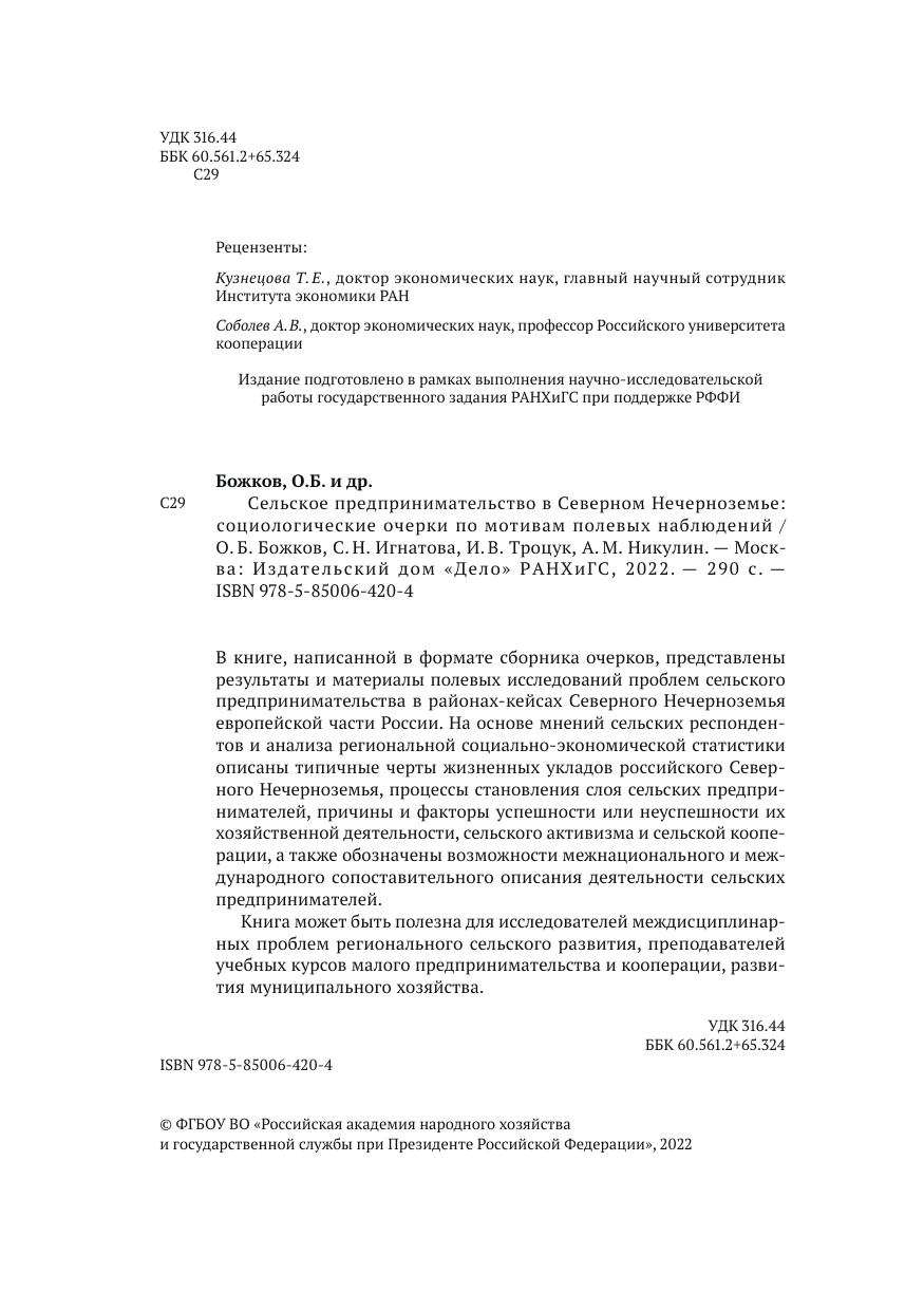 В книге, написанной в формате сборника очерков, представлены результаты и материалы полевых исследований проблем сельского предпринимательства в районах-кейсах Северного Нечерноземья европейской части России. На основе мнений сельских респондентов и анализа региональной социально-экономической статистики описаны типичные черты жизненных укладов российского Северного Нечерноземья, процессы становления слоя сельских предпринимателей, причины и факторы успешности или неуспешности их хозяйственной деятельности, сельского активизма и сельской кооперации, а также обозначены возможности межнационального и международного сопоставительного описания деятельности сельских предпринимателей. Книга может быть полезна для исследователей междисциплинарных проблем регионального сельского развития, преподавателей учебных курсов малого предпринимательства и кооперации, развития муниципального хозяйства.