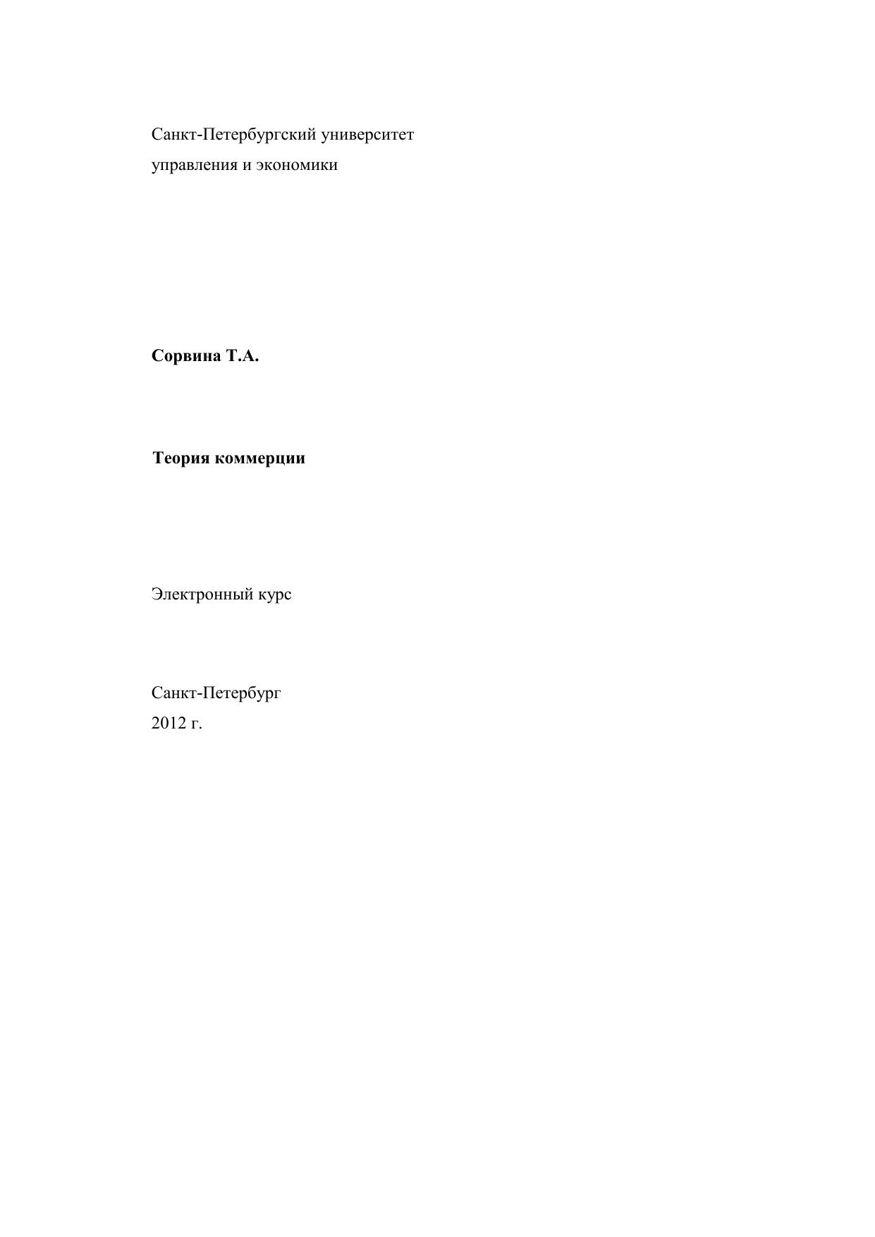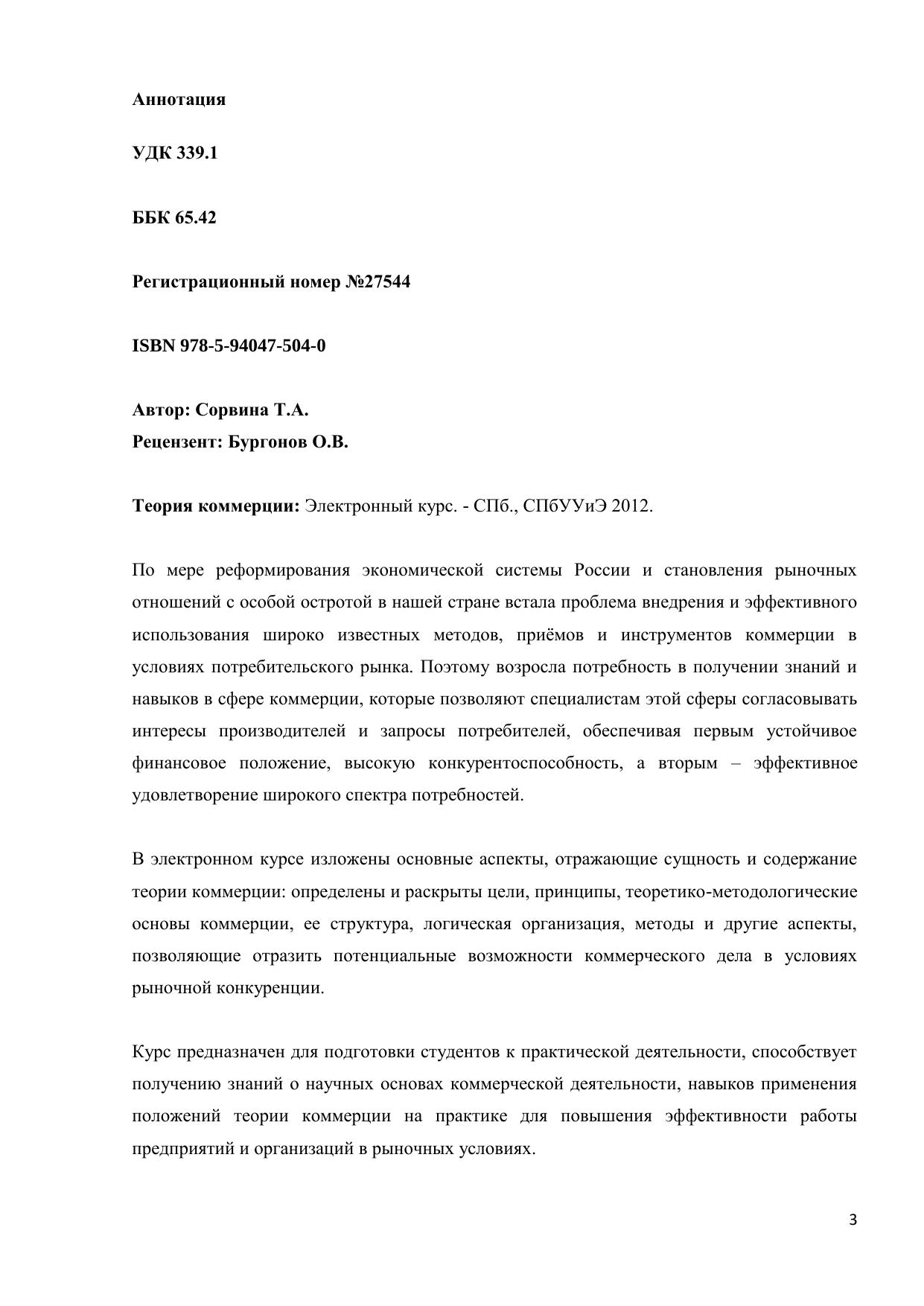 По мере реформирования экономической системы России и становления рыночных отношений с особой остротой в нашей стране встала проблема внедрения и эффективного использования широко известных методов, приёмов и инструментов коммерции в условиях потребительского рынка. Поэтому возросла потребность в получении знаний и навыков в сфере коммерции, которые позволяют специалистам этой сферы согласовывать интересы производителей и запросы потребителей, обеспечивая первым устойчивое финансовое положение, высокую конкурентоспособность, а вторым – эффективное удовлетворение широкого спектра потребностей. В электронном курсе изложены основные аспекты, отражающие сущность и содержание теории коммерции: определены и раскрыты цели, принципы, теоретико-методологические основы коммерции, ее структура, логическая организация, методы и другие аспекты, позволяющие отразить потенциальные возможности коммерческого дела в условиях рыночной конкуренции. Курс предназначен для подготовки студентов к практической деятельности, способствует получению знаний о научных основах коммерческой деятельности, навыков применения положений теории коммерции на практике для повышения эффективности работы предприятий и организаций в рыночных условиях.