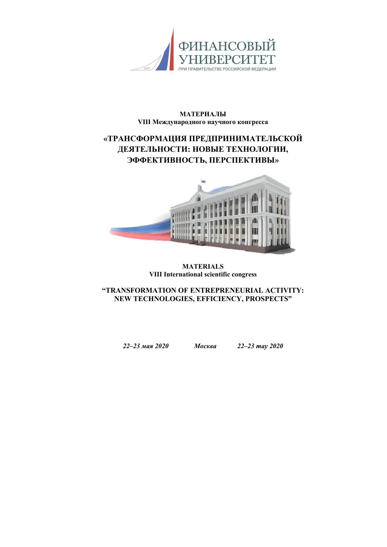 В сборнике опубликованы результаты исследования участников VIII Международного научного конгресса "Трансформация предпринимательской деятельности: новые технологии, эффективность, перспективы".