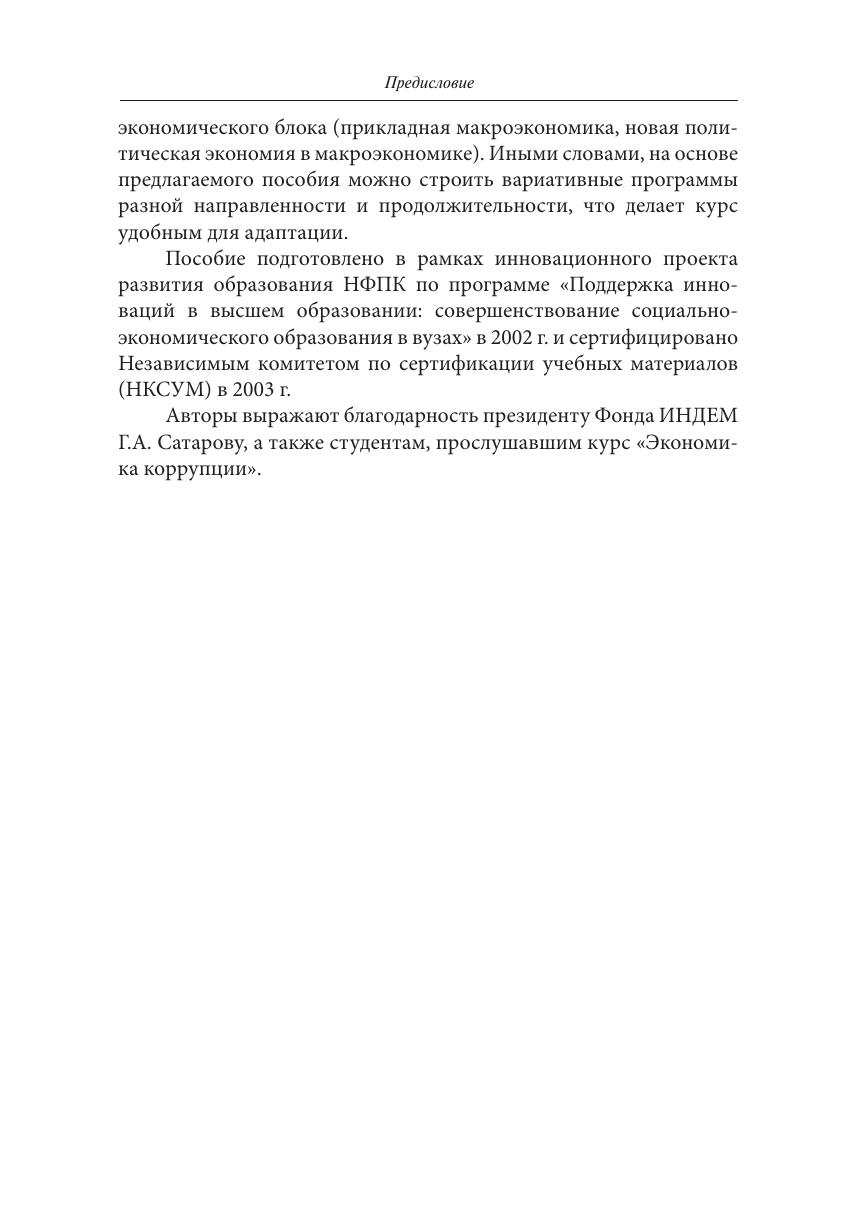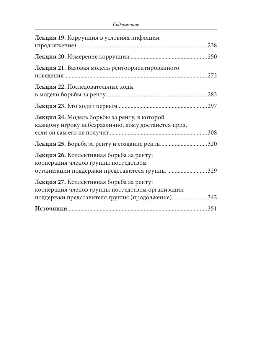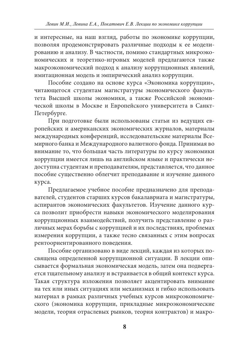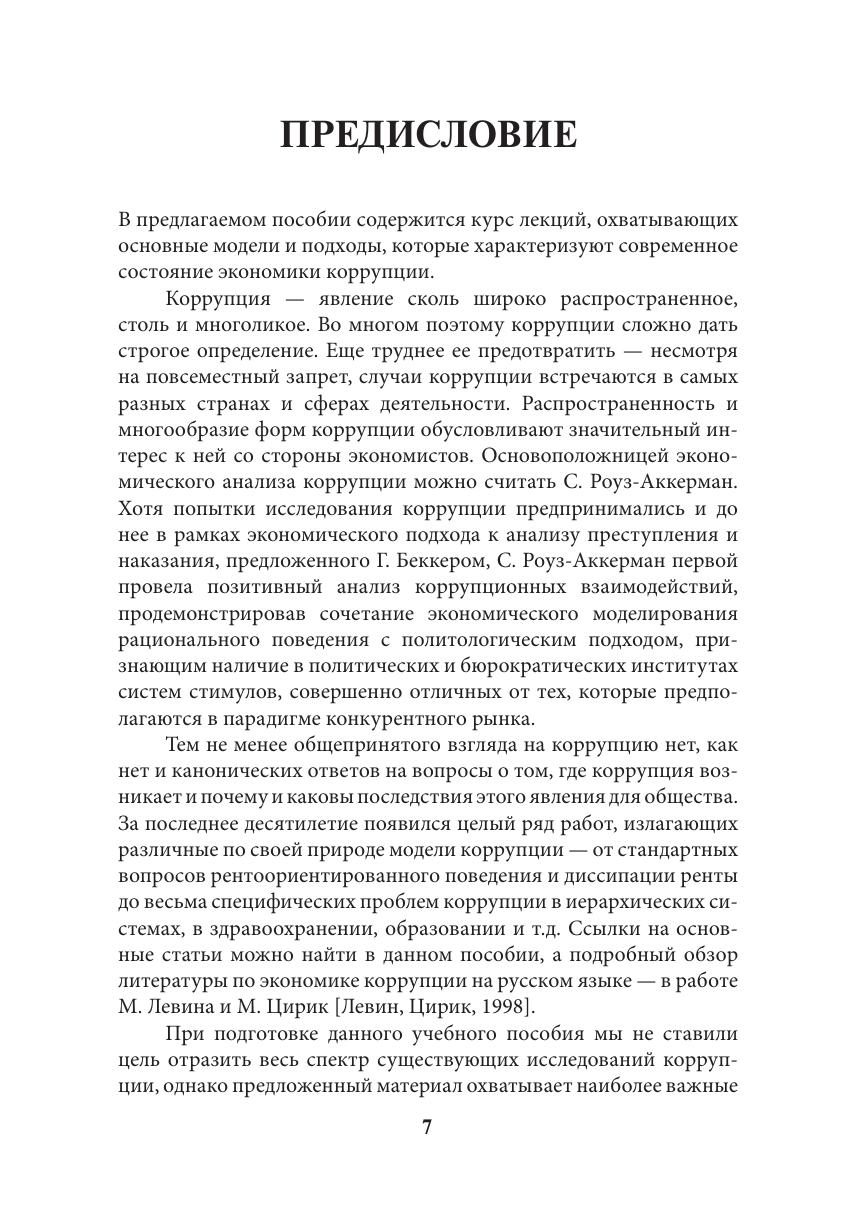 В учебном пособии «Лекции по экономике коррупции» с помощью появившихся в последние десятилетия социально-экономических и политических моделей исследуются причины существования коррупции, ее развитие, последствия и методы борьбы с ней. Наряду с микроэкономикой широко используются теория игр, модели рентоориентированного поведения, концепции общественного выбора и экономики общественного сектора. Обсуждаются также способы измерения коррупции. Показан системный характер коррупции, раскрытие тайн которой — вызов для экономической науки, а борьба с которой требует не только политической воли, но и анализа ее закономерностей. Учебное пособие учитывает опыт чтения лекций авторов книги по экономике коррупции и рентоориентированного поведения в НИУ ВШЭ, Российской экономической школе, МГУ, Воронежском государственном университете, Европейском университете в Санкт-Петербурге, Университете Париж-1 Сорбонна и др. Наличие большого количества современных экономических и теоретико-игровых моделей позволяет использовать пособие в рамках курсов микроэкономики, экономики общественного сектора, политической экономии, права и экономики и теории игр. Для студентов старших курсов и аспирантов — экономистов, политологов, социологов и юристов, специалистов по государственному управлению, а также всех, кому не безразлична коррупция — интереснейшее явление в жизни общества.