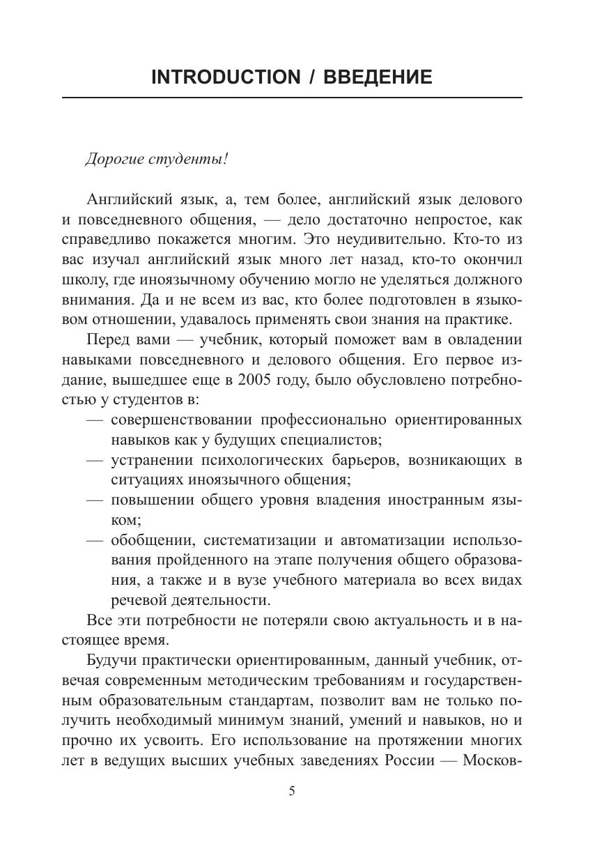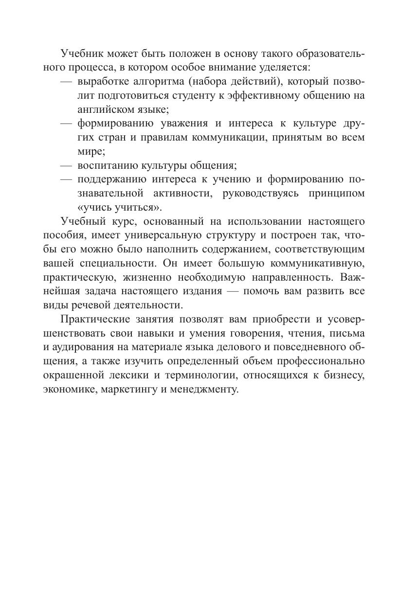 Настоящее издание является учебным курсом по дисциплине «Деловой иностранный (английский) язык», разработанный для студентов неязыковых вузов. Учебник развивает коммуникативные и профессионально-коммуникативные умения и компетенции, необходимые для эффективного участия в межкультурной коммуникации в различных сферах профессиональной деятельности. Учебник предназначен для студентов неязыковых вузов разных специальностей и различных уровней обученности, а также для тех, кто желает самостоятельно совершенствовать свои знания, умения и навыки по английскому языку делового и повседневного общения.