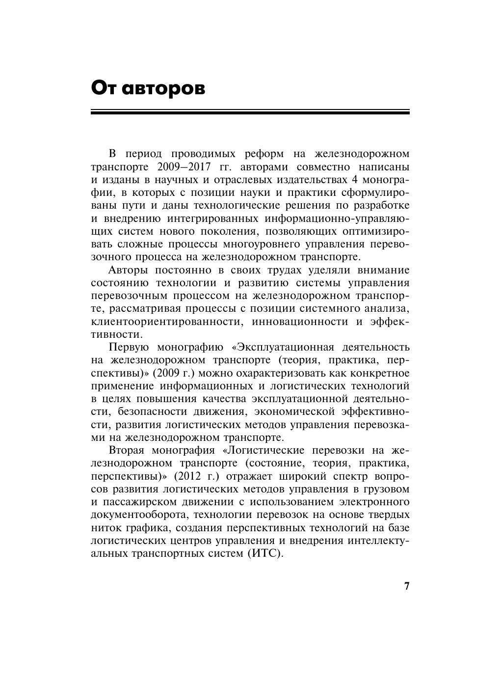 Рассмотрено состояние и перспективы развития системы управления перевозочным процессом на железнодорожном транспорте в условиях реформирования. Приведен анализ мировых процессов развития экономики, представлены эффективные пути перехода на полигонные технологии управления перевозочным процессом, современных систем организации вагонопотоков и графика движения поездов, систем оперативного планирования поездной и грузовой работой и интеграционных технологий, повышения качества диспетчерского управления на железных дорогах. Приведены современные подходы к организации и технологии местной работы в условиях развития вертикали системы управления. Показаны преимущества государственного подхода к системе безопасности движения поездов на железнодорожном транспорте. Представлен опыт эффективного управления работой локомотивов в условиях ЦУТР, а также внедрения интеллектуальных транспортных систем на железнодорожном транспорте и экономической эффективности технологии и управления перевозками на железных дорогах.