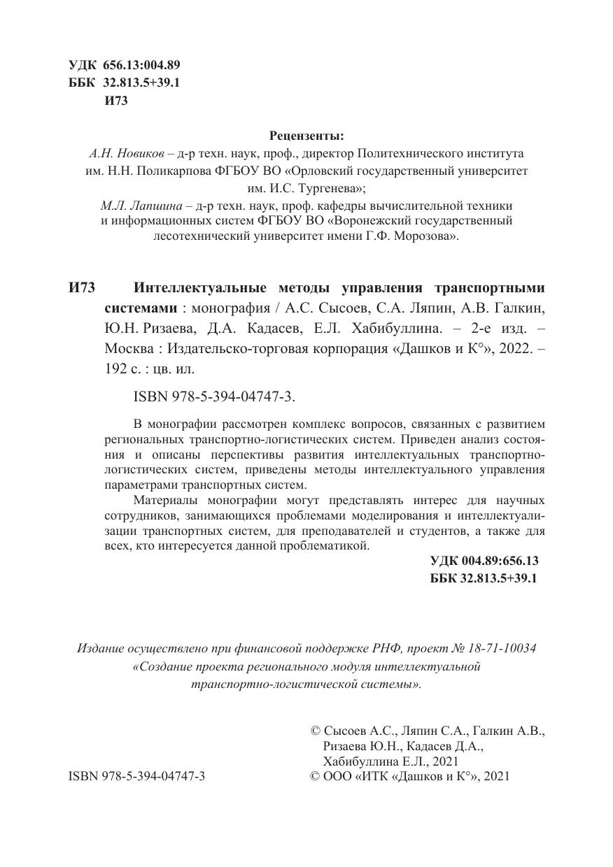 Материалы монографии могут представлять интерес для научных сотрудников, занимающихся проблемами моделирования и интеллектуализации транспортных систем, для преподавателей и студентов, а также для всех, кто интересуется данной проблематикой.