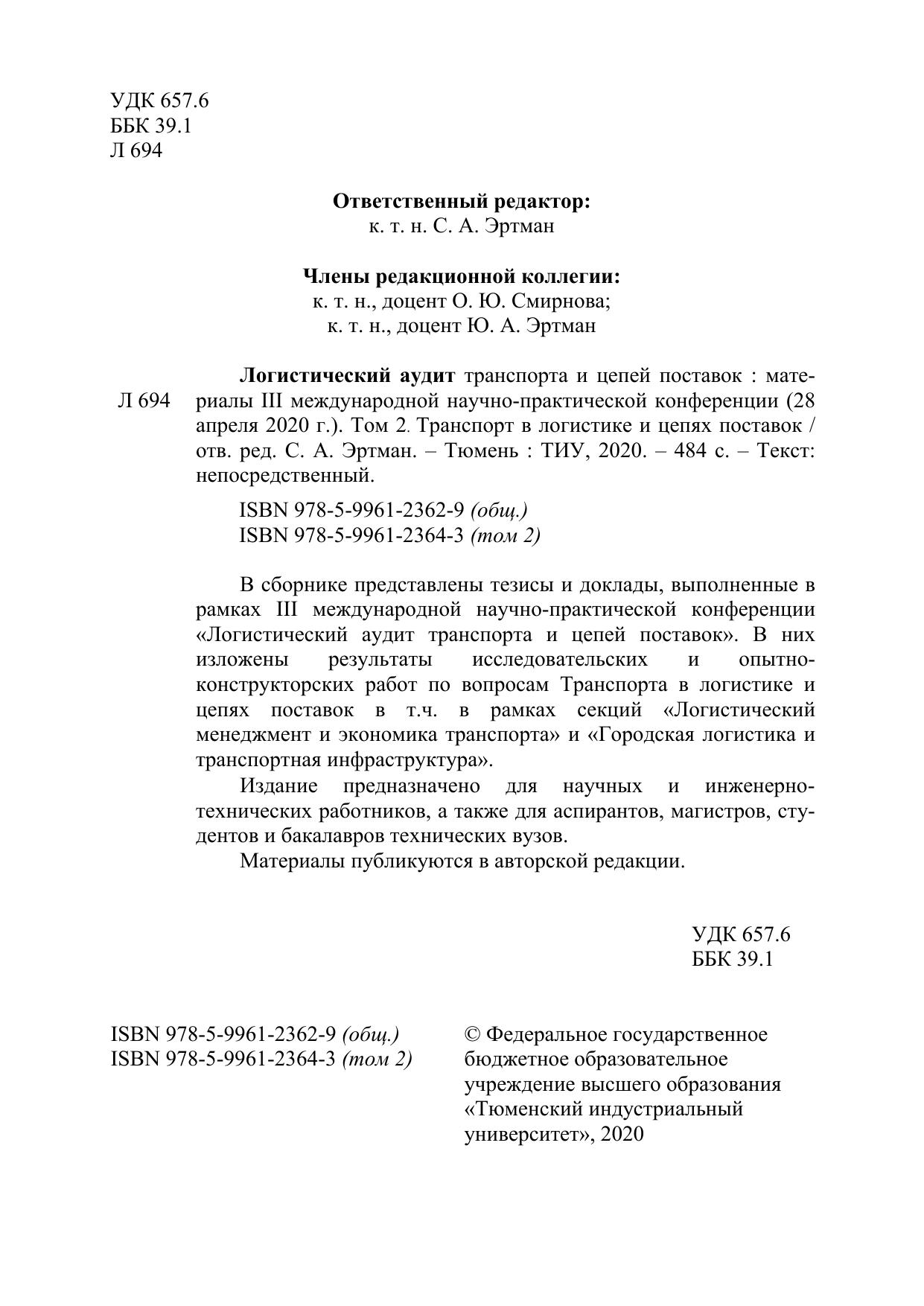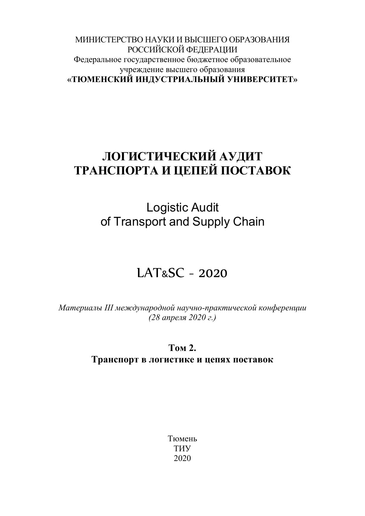Логистический аудит транспорта и цепей поставок: материалы III международной научно-практической конференции (28 апреля 2020 г.). Том 2. Транспорт в логистике и цепях поставок