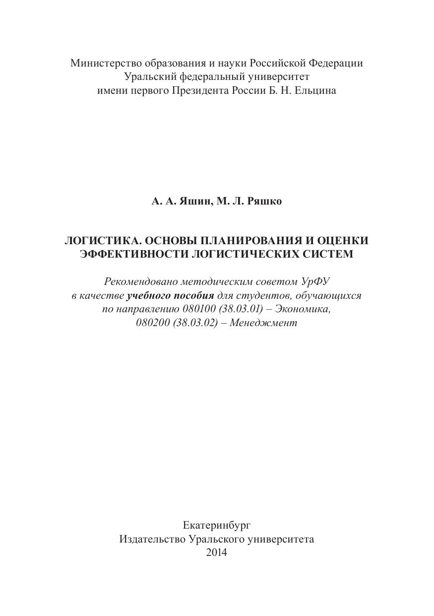 Логистика. Основы планирования и оценки эффективности логистических систем: учеб. пособие