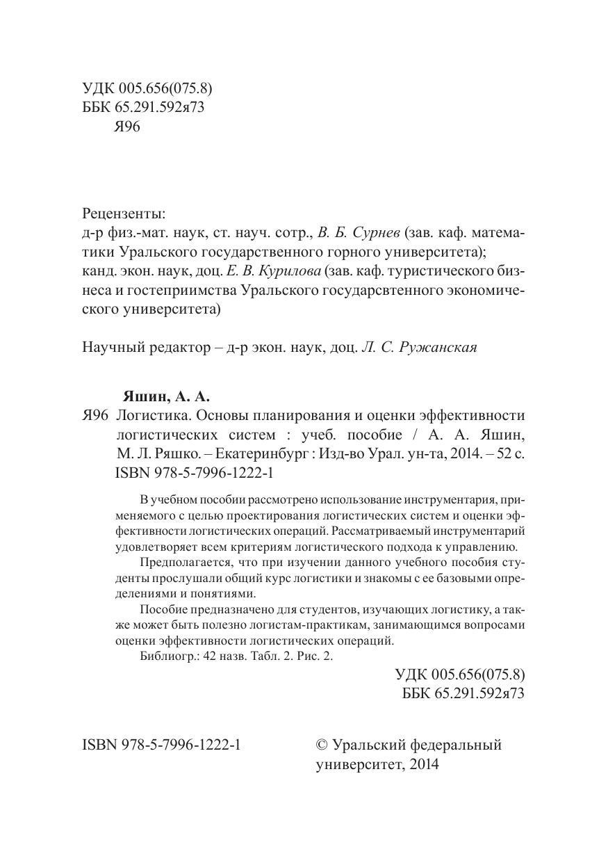 В учебном пособии рассмотрено использование инструментария, применяемого с целью проектирования логистических систем и оценки эффективности логистических операций. Рассматриваемый инструментарий удовлетворяет всем критериям логистического подхода к управлению. Предполагается, что при изучении данного учебного пособия студенты прослушали общий курс логистики и знакомы с ее базовыми определениями и понятиями. Пособие предназначено для студентов, изучающих логистику, а также может быть полезно логистам-практикам, занимающимся вопросами оценки эффективности логистических операций.