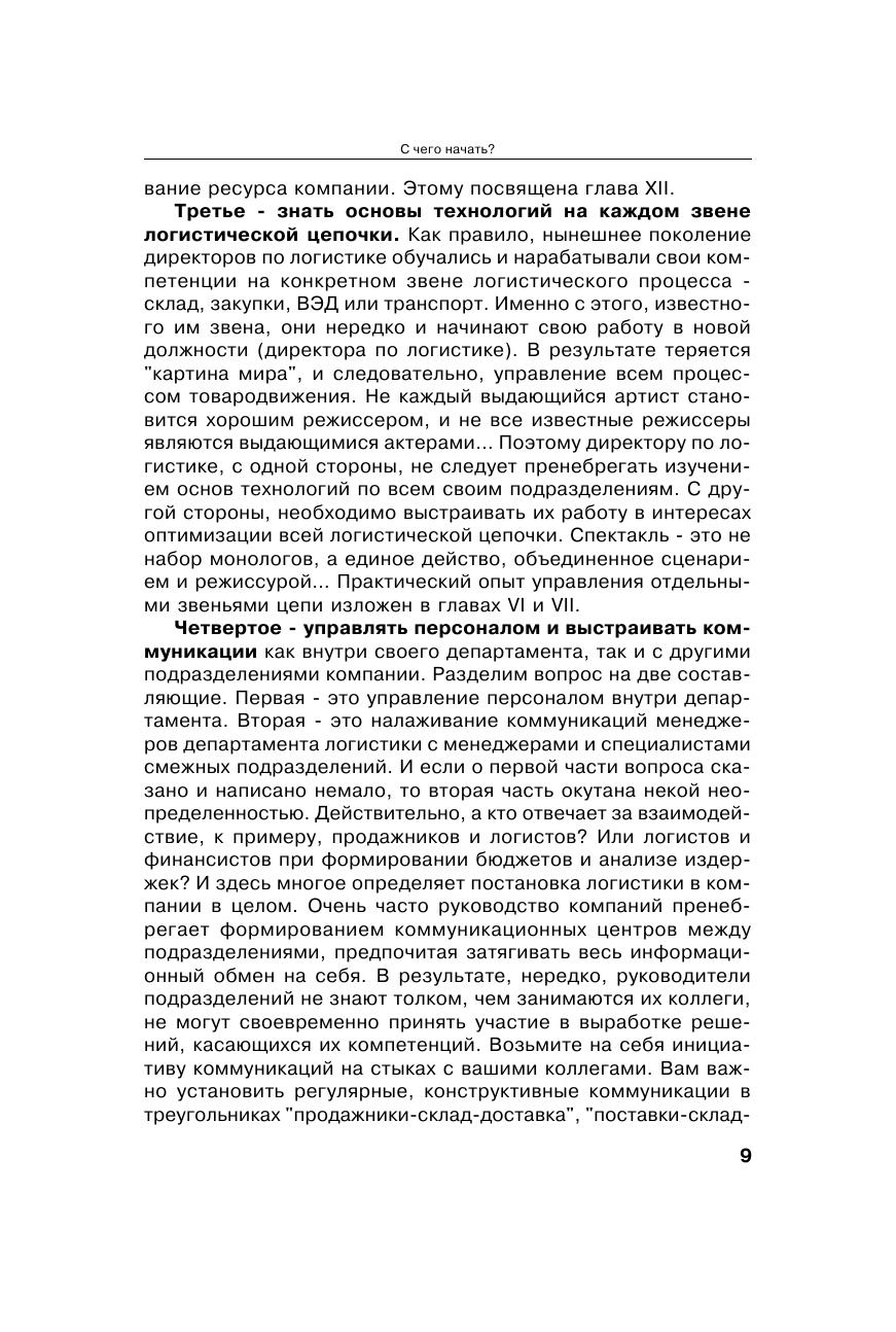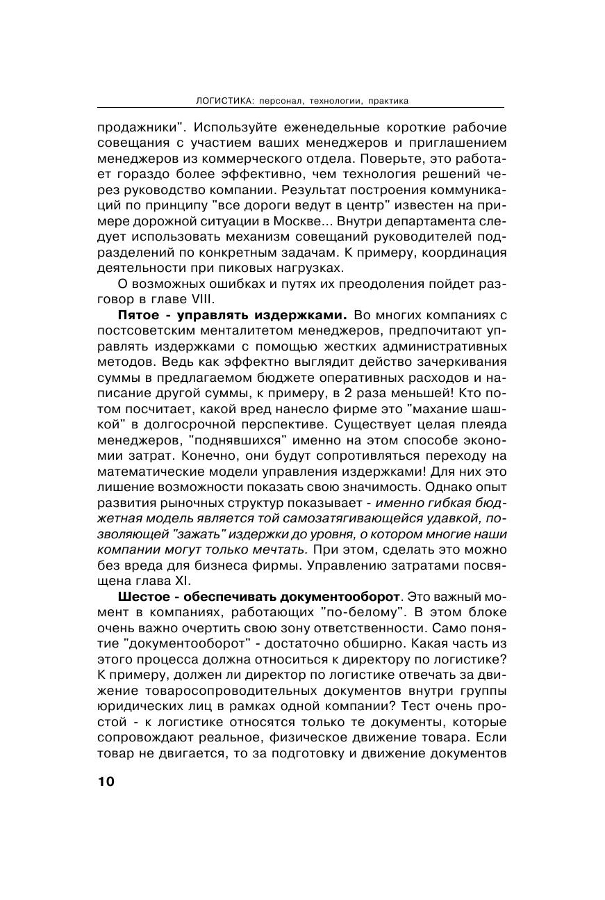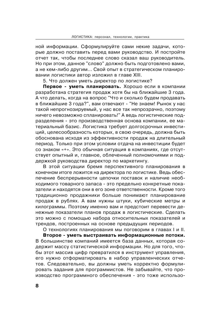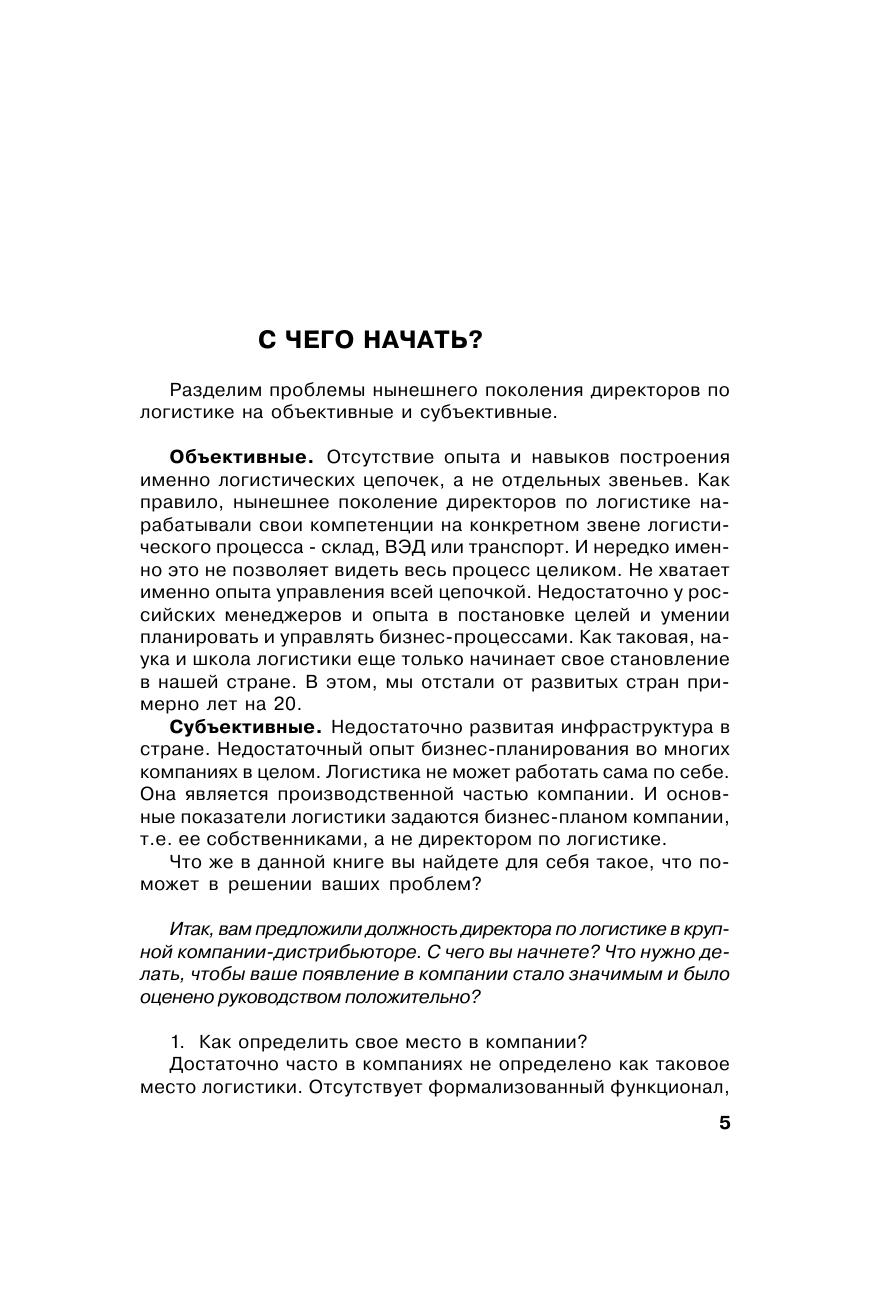 Книга является одной из немногих, основанных на обширном практическом опыте директора по логистике. Теоретические основы логистики изложены простым и понятным языком, без избыточного количества формул и научных изысков, с большим количеством примеров. Обширный набор приложений позволяет применять данное издание в практической деятельности. Особое внимание уделено управлению персоналом и построению системы совершенствования качества логистических услуг. Безусловный интерес представляют разделы, излагающие опыт работы с логистическими операторами. Книга содержит советы и рекомендации по определению места логистики в компаниях, приводит наиболее распространенные ошибки на пути построения деятельности логистических подразделений. Книга предназначена руководителям компаний, специалистам и менеджерам, которые занимаются логистикой, а также студентам и преподавателям транспортных и экономических вузов