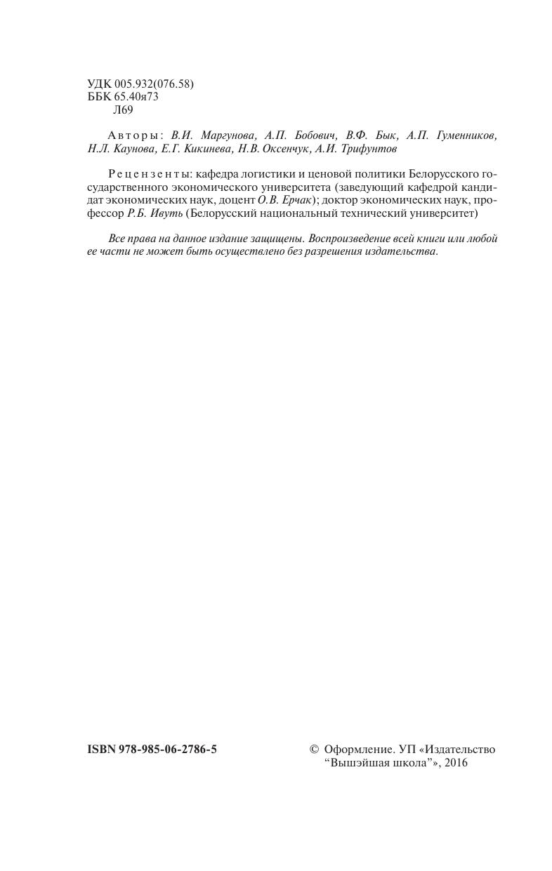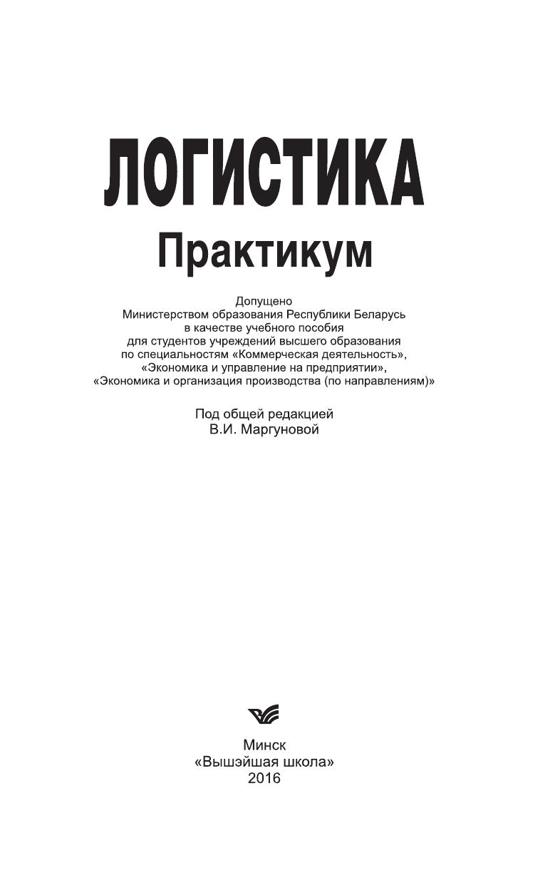 Рассматриваются теория и методология логистики, закупочная, производственная, распределительная логистика, управление запасами, сервис в логистике, логистика складирования, транспортная логистика, информационные технологии и системы в логистике, управление затратами, логистический риск. Содержит задания для аудиторных занятий и самостоятельной работы по основным темам дисциплины. Для студентов учреждений высшего образования по специальностям «Коммерческая деятельность», «Экономика и управление на предприятии», «Экономика и организация производства (по направлениям)». Будет полезно слушателям системы подготовки и переподготовки кадров, магистрантам, практическим работникам.