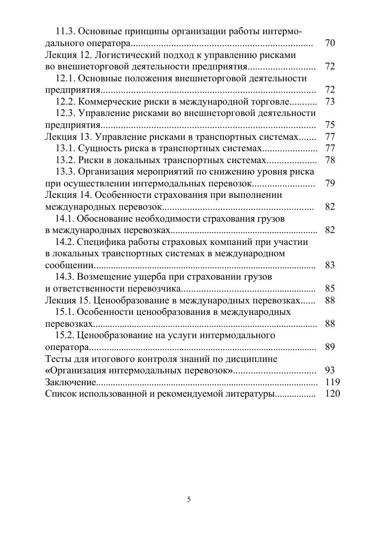 Конспект лекций «Организация интермодальных перевозок» может быть использован студентами направления «Операционная деятельность в логистике» при изучении профессиональных модулей «Планирование и организация логистического процесса в организациях (подразделениях) различных сфер деятельности» и «Управление логистическими процессами в закупках, производстве и распределении». Представленный теоретический материал позволяет получить комплексное представление об особенностях управления транспортировкой грузов в смешанном сообщении при участии интермодального оператора. Соответствует современным требованиям Федерального государственного образовательного стандарта среднего профессионального образования и профессиональным квалификационным требованиям.