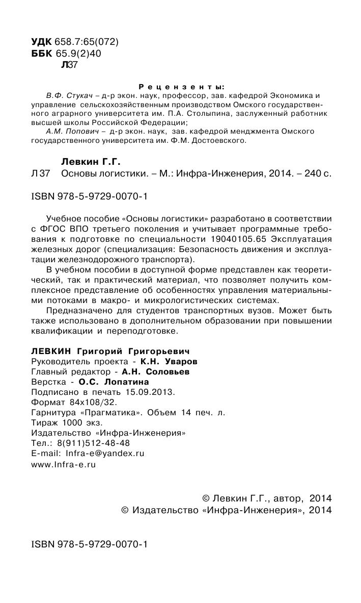 Учебное пособие «Основы логистики» разработано в соответствии с ФГОС ВПО третьего поколения и учитывает программные требования к подготовке по специальности 19040105.65 Эксплуатация железных дорог (специализация: Безопасность движения и эксплуатации железнодорожного транспорта). В учебном пособии в доступной форме представлен как теоретический, так и практический материал, что позволяет получить комплексное представление об особенностях управления материальными потоками в макро– и микрологистических системах. Предназначено для студентов транспортных вузов. Может быть также использовано в дополнительном образовании при повышении квалификации и переподготовке
