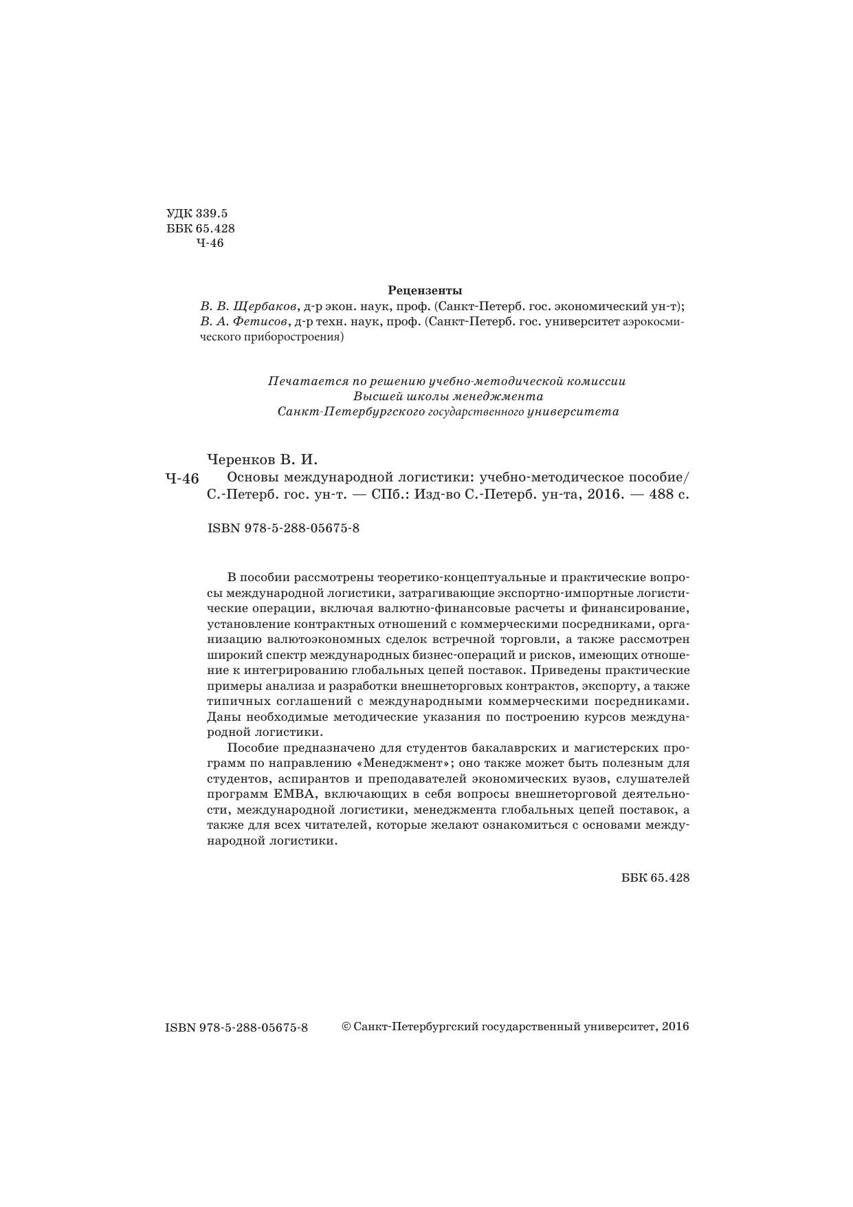 Пособие предназначено для студентов бакалаврских и магистерских программ по направлению «Менеджмент»; оно также может быть полезным для студентов, аспирантов и преподавателей экономических вузов, слушателей программ ЕМВА, включающих в себя вопросы внешнеторговой деятельности, международной логистики, менеджмента глобальных цепей поставок, а также для всех читателей, которые желают ознакомиться с основами международной логистики.