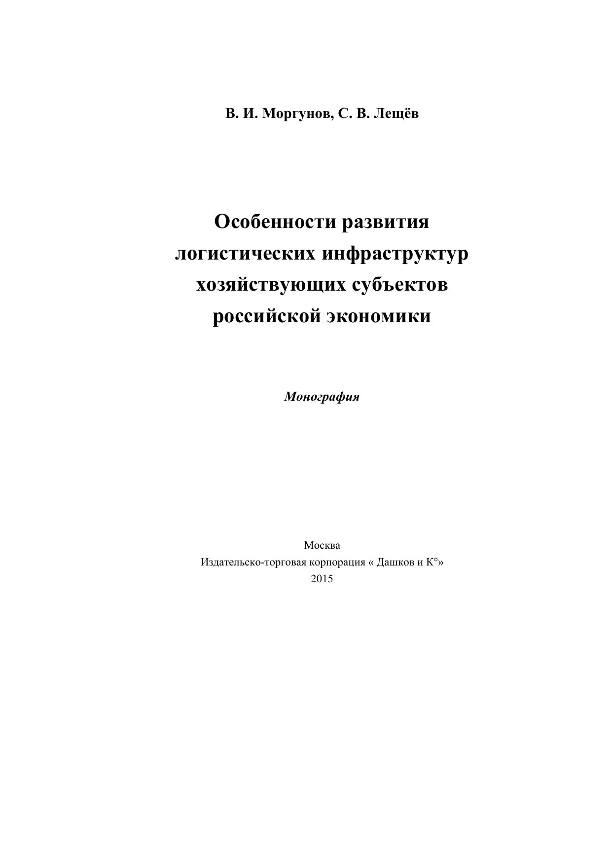 Особенности развития логистических инфраструктур хозяйствующих субъектов Российской экономики: монография