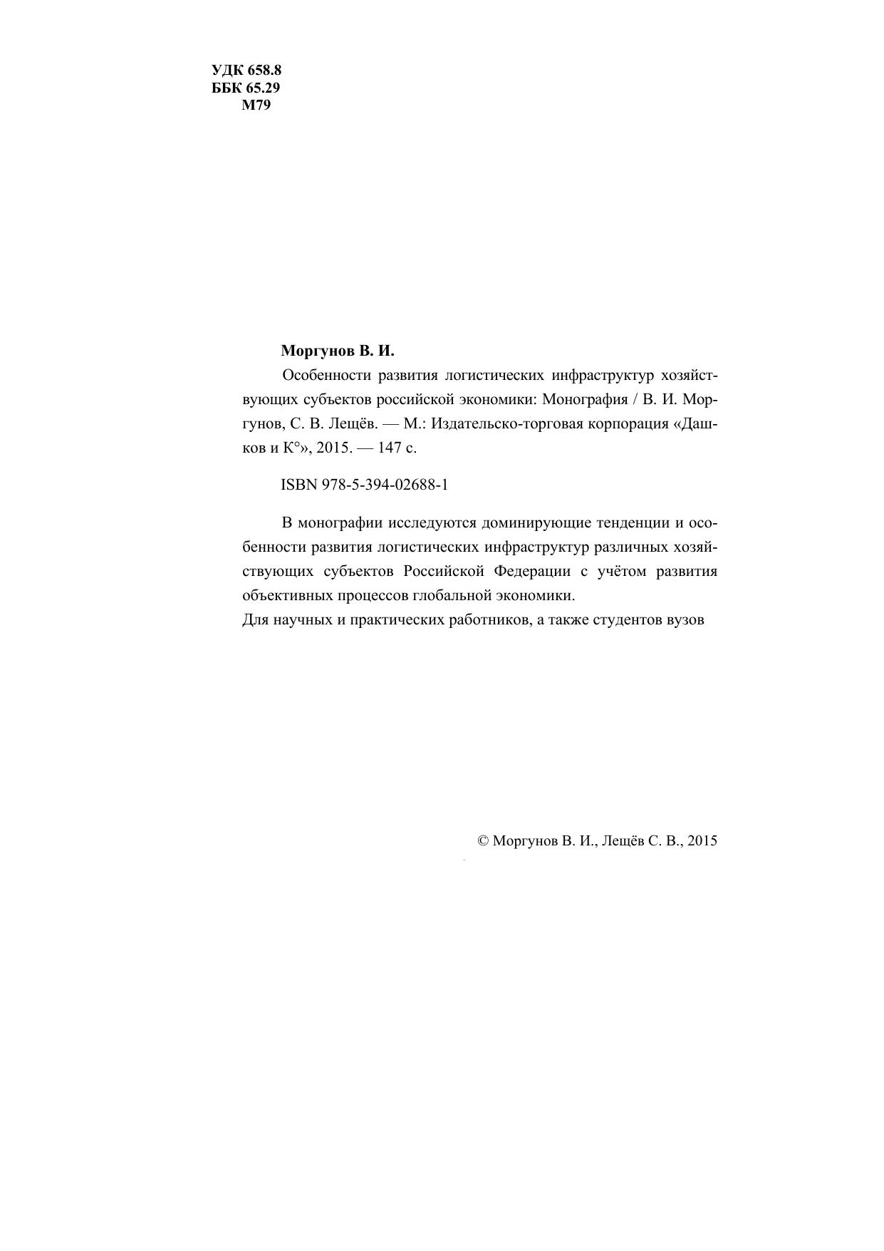 В монографии исследуются доминирующие тенденции и особенности развития логистических инфраструктур различных хозяйствующих субъектов Российской Федерации с учётом развития объективных процессов глобальной экономики. Для научных и практических работников, а также студентов вузов