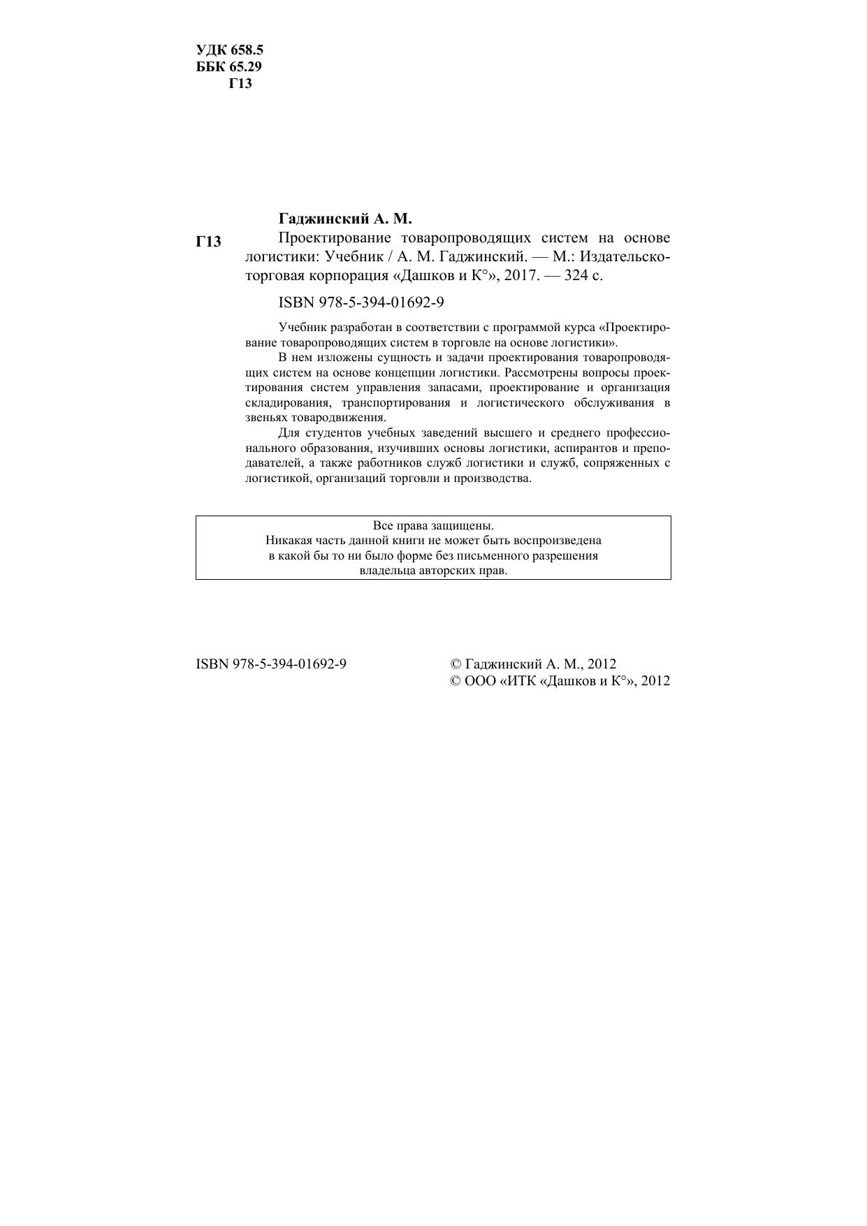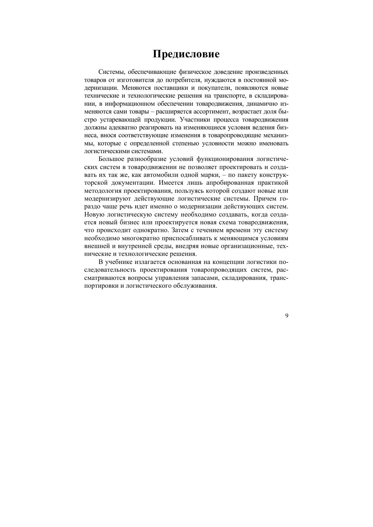 Учебник разработан в соответствии с программой курса "Проектирование товаропроводящих систем в торговле на основе логистики". В нем изложены сущность и задачи проектирования товаропроводящих систем на основе концепции логистики. Рассмотрены вопросы проектирования систем управления запасами, проектирование и организация складирования, транспортирования и логистического обслуживания в звеньях товародвижения. Для студентов учебных заведений высшего и среднего профессионального образования, изучивших основы логистики, аспирантов и преподавателей, а также работников служб логистики и служб, сопряженных с логистикой, организаций торговли и производства.