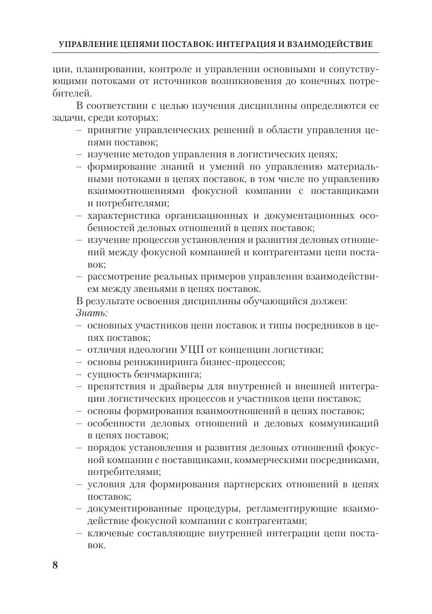Представлен как теоретический, так и практический материал в сфере управления цепями поставок, необходимый для формирования профессиональных компетенций логистов, понимания концепции логистики и управления цепями поставок. Описываются организационные структуры, механизмы перемещения и распределения материальных потоков от источника их возникновения до потребления с участием фокусной компании и различных коммерческих организаций и посредников, связанных со снабжением и сбытом, транспортировкой, запасами, складским хозяйством.