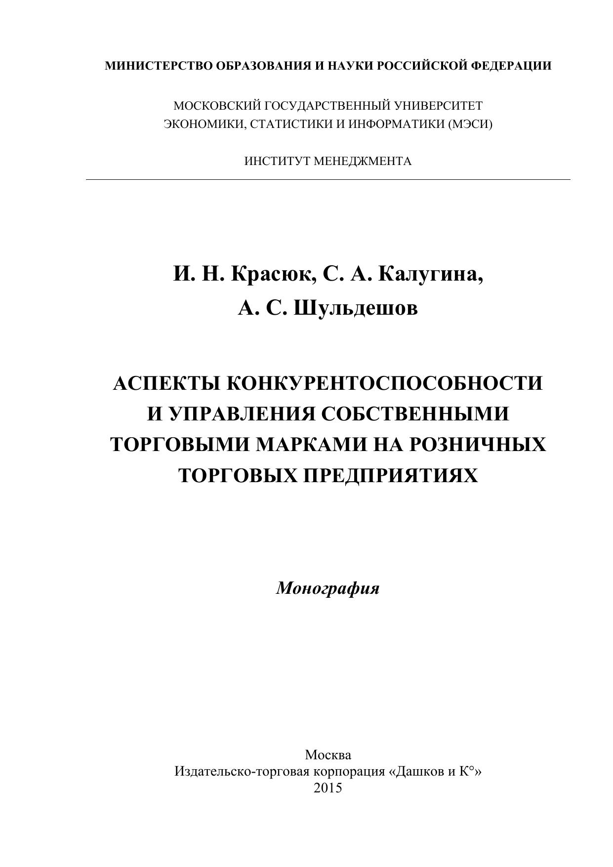 Аспекты конкурентоспособности и управления собственными торговыми марками на розничных торговых предприятиях: монография