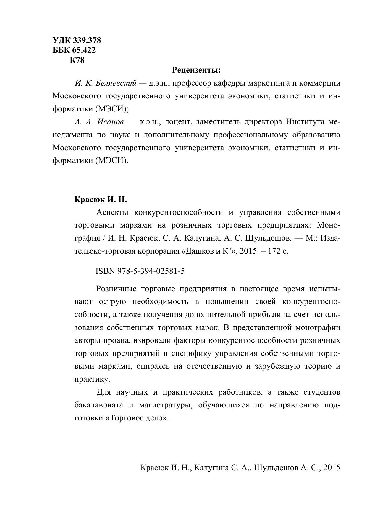 Розничные торговые предприятия в настоящее время испытывают острую необходимость в повышении своей конкурентоспособности, а также получения дополнительной прибыли за счет использования собственных торговых марок. В представленной монографии авторы проанализировали факторы конкурентоспособности розничных торговых предприятий и специфику управления собственными торговыми марками, опираясь на отечественную и зарубежную теорию и практику. Для научных и практических работников, а также студентов бакалавриата и магистратуры, обучающихся по направлению подготовки «Торговое дело».