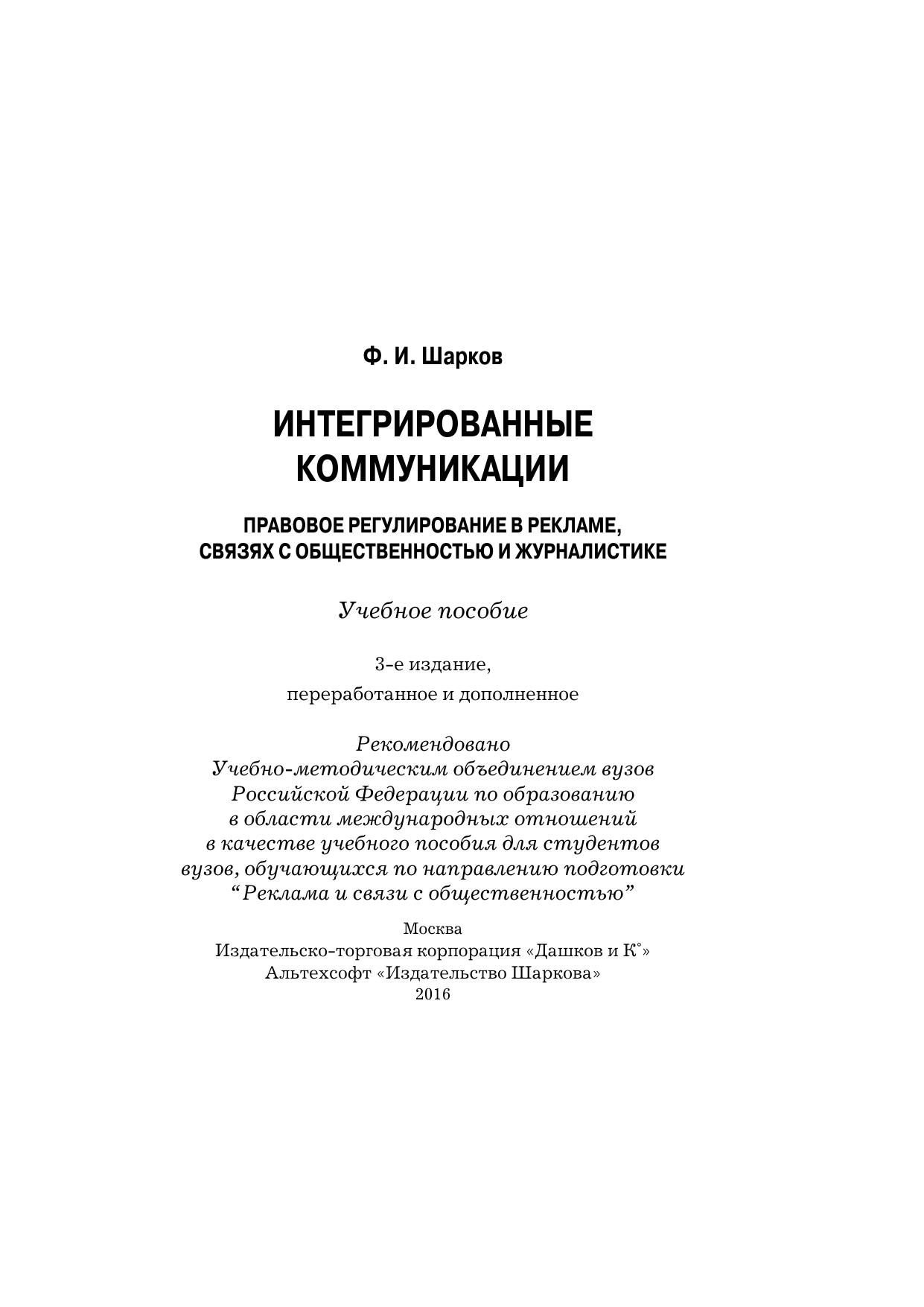 Интегрированные коммуникации: правовое регулирование в рекламе, связях с общественностью и журналистике: Учебное пособие