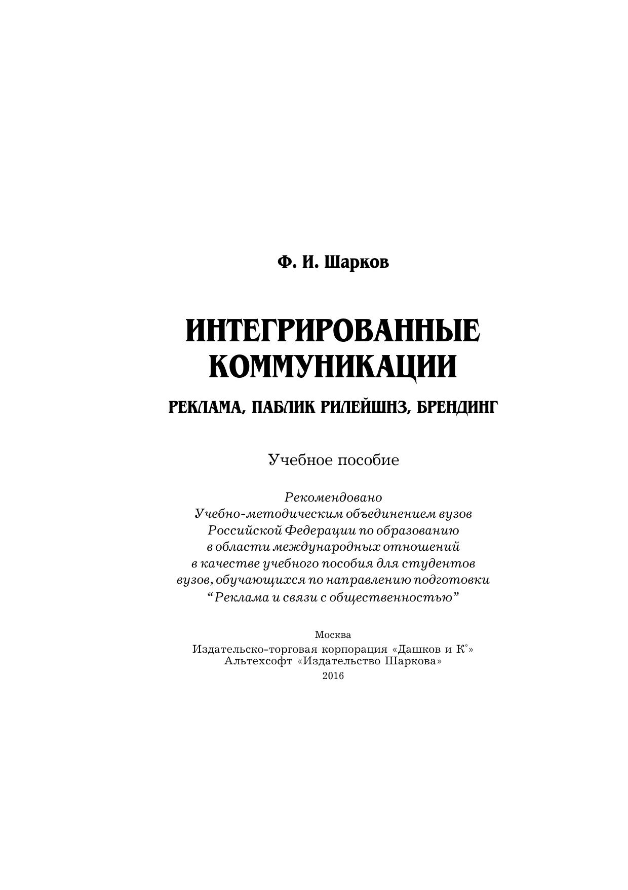 Интегрированные коммуникации: реклама, паблик рилейшнз, брендинг: Учебное пособие