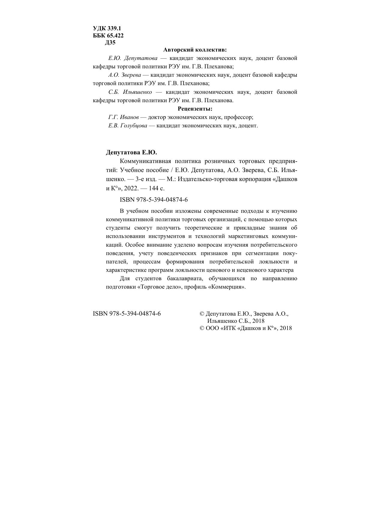 В учебном пособии изложены современные подходы к изучению коммуникативной политики торговых организаций, с помощью которых студенты смогут получить теоретические и прикладные знания об использовании инструментов и технологий маркетинговых коммуникаций. Особое внимание уделено вопросам изучения потребительского поведения, учету поведенческих признаков при сегментации покупателей, процессам формирования потребительской лояльности и характеристике программ лояльности ценового и неценового характера. Для студентов бакалавриата, обучающихся по направлению подготовки "Торговое дело", профиль "Коммерция".