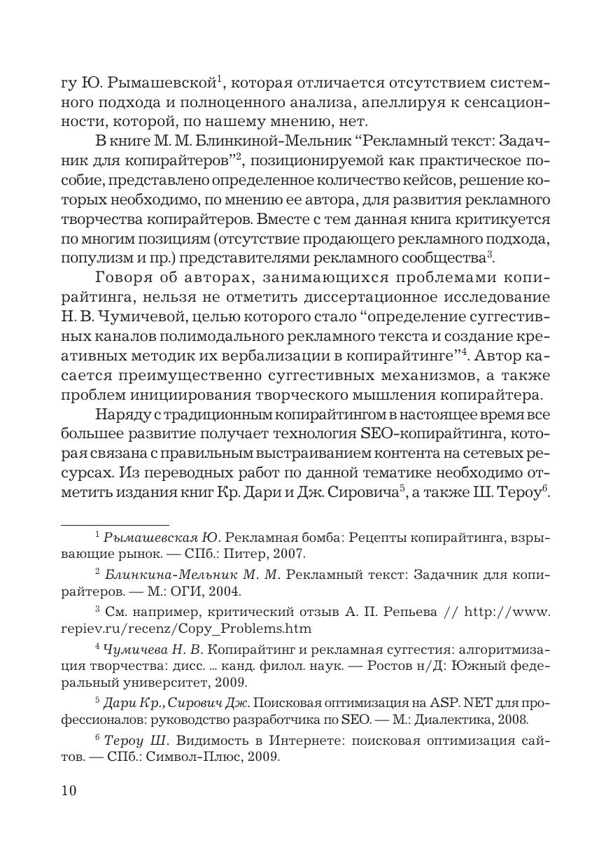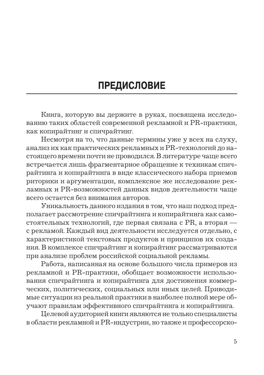 Книга комплексно рассматривает копирайтинг и спичрайтинг как практические рекламные и PR-технологии. На основе многочисленных примеров автор показывает возможности использования техник копирайтинга и спичрайтинга в сфере бизнеса, политики, НКО, социальной рекламы. Характеризуются возможности сетевых технологий копирайтинга и спичрайтинга. Отдельно рассматриваются форматы занятости в данных сферах, впервые исследуется фрилансинг как способ удаленной работы спичрайтеров и копирайтеров. Для PR-специалистов, рекламщиков, профессорско-преподавательского состава, студентов, фрилансеров.