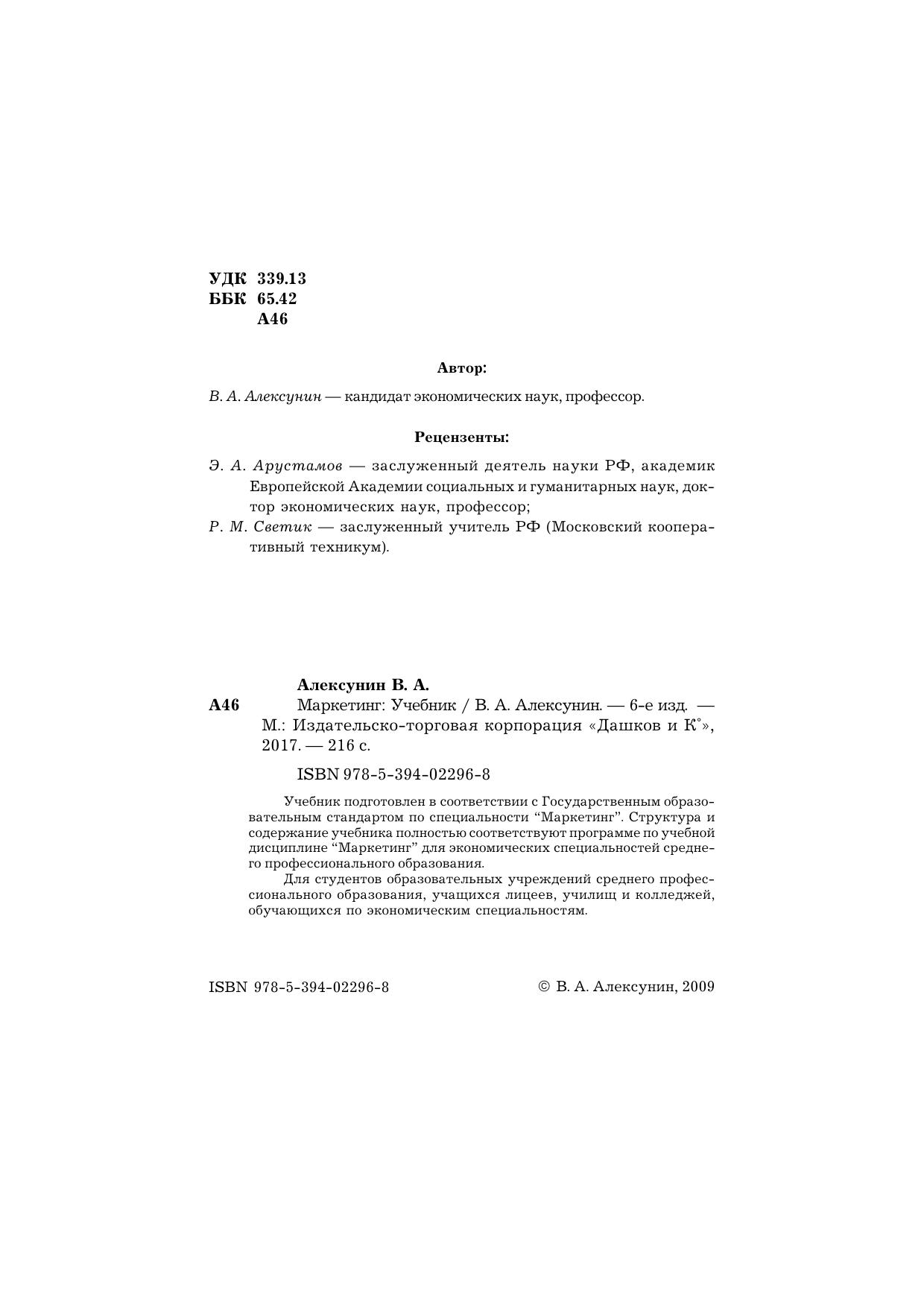 Учебник подготовлен в соответствии с Государственным образовательным стандартом по специальности "Маркетинг". Структура и содержание учебника полностью соответствуют новой программе по учебной дисциплине "Маркетинг" для экономических специальностей среднего профессионального образования. Для студентов образовательных учреждений среднего профессионального образования, учащихся по экономическим специальностям.