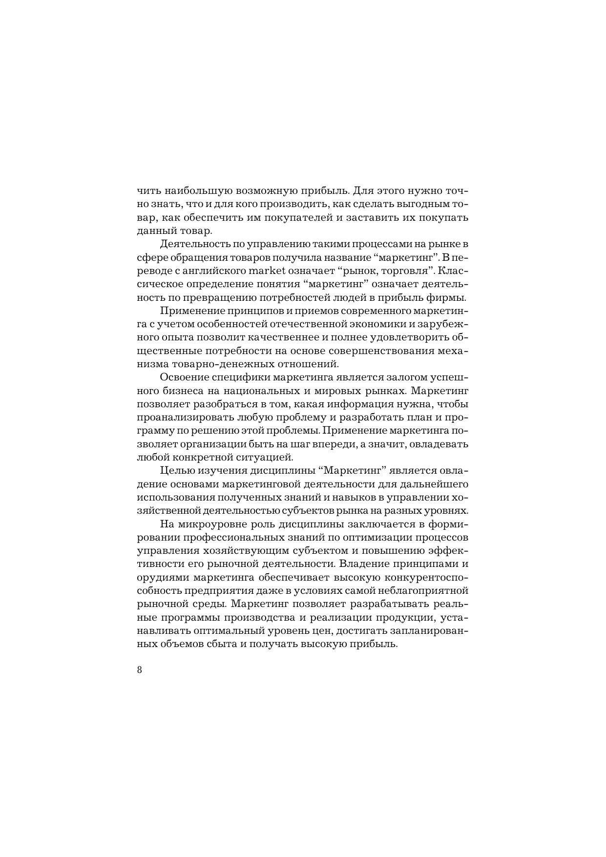 В учебнике рассмотрены основные функции, задачи, принципы и концепции управления маркетинговой деятельностью предприятий на современном этапе экономического развития. Основное внимание уделено формам и методам маркетингового исследования рынка, а также анализу маркетинговой информации, изучению товарной, ценовой и сбытовой политики. Для студентов бакалавриата, обучающихся по направлениям подготовки «Экономика», «Менеджмент», «Торговое дело», а также для руководителей предприятий, предпринимателей, менеджеров государственных и общественных организаций.