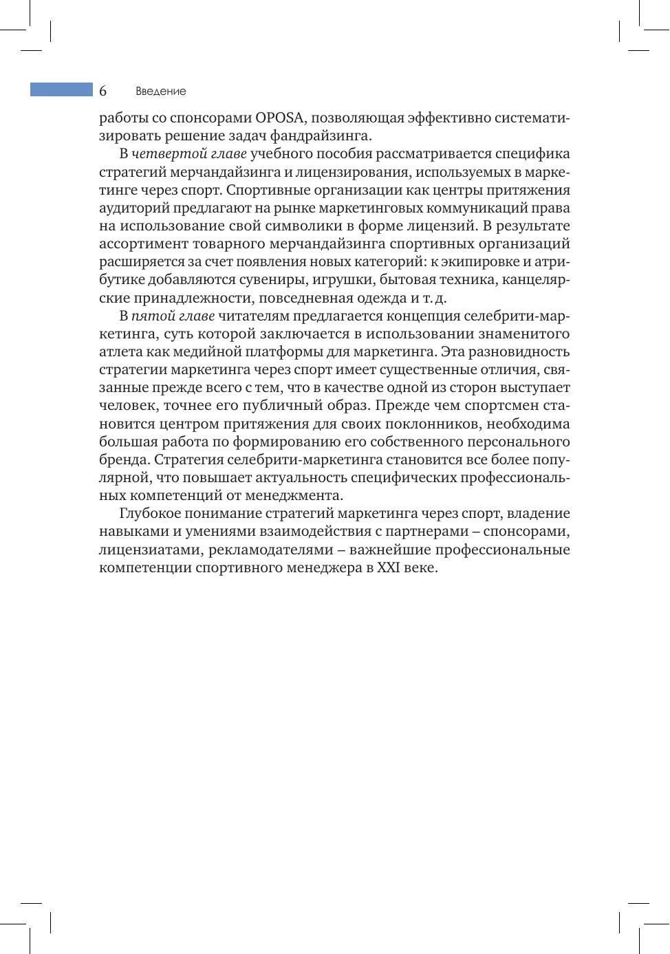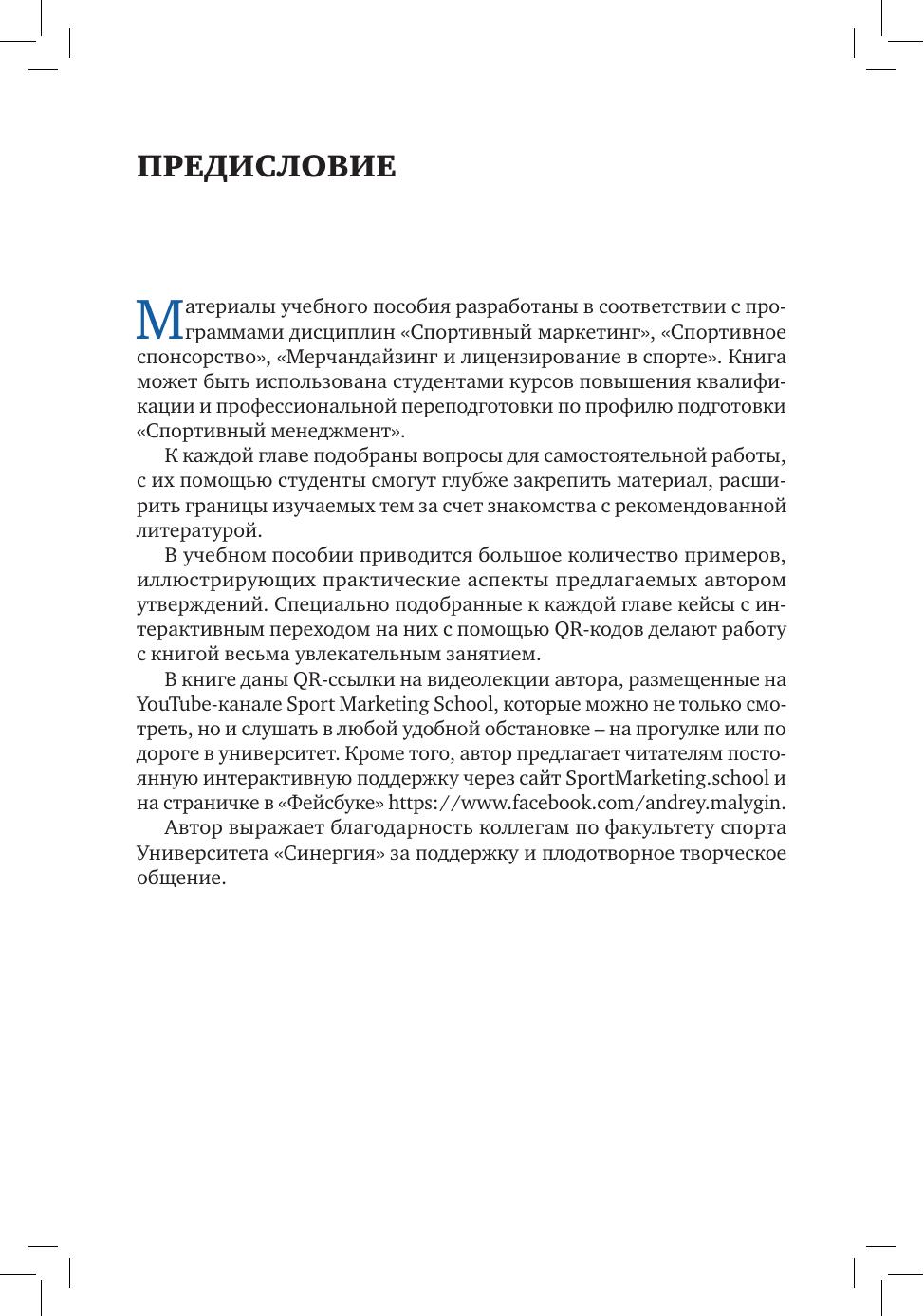 Материалы учебного пособия разработаны в соответствии с программами дисциплин «Спортивный маркетинг», «Спортивное спонсорство», «Мерчандайзинг и лицензирование в спорте». Книга может быть использована студентами курсов повышения квалификации и профессиональной переподготовки по профилю подготовки «Спортивный менеджмент». В учебном пособии использованы собственные фотографии автора.