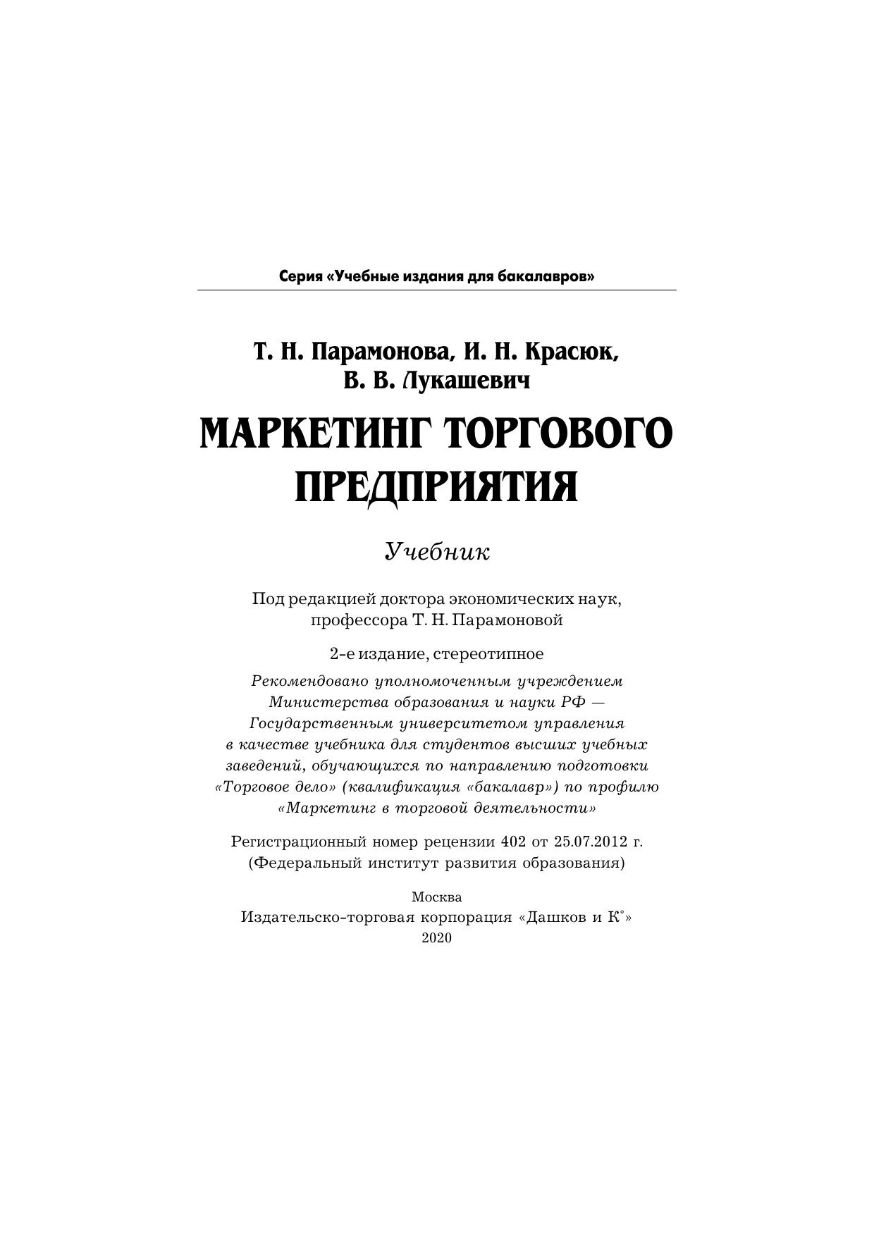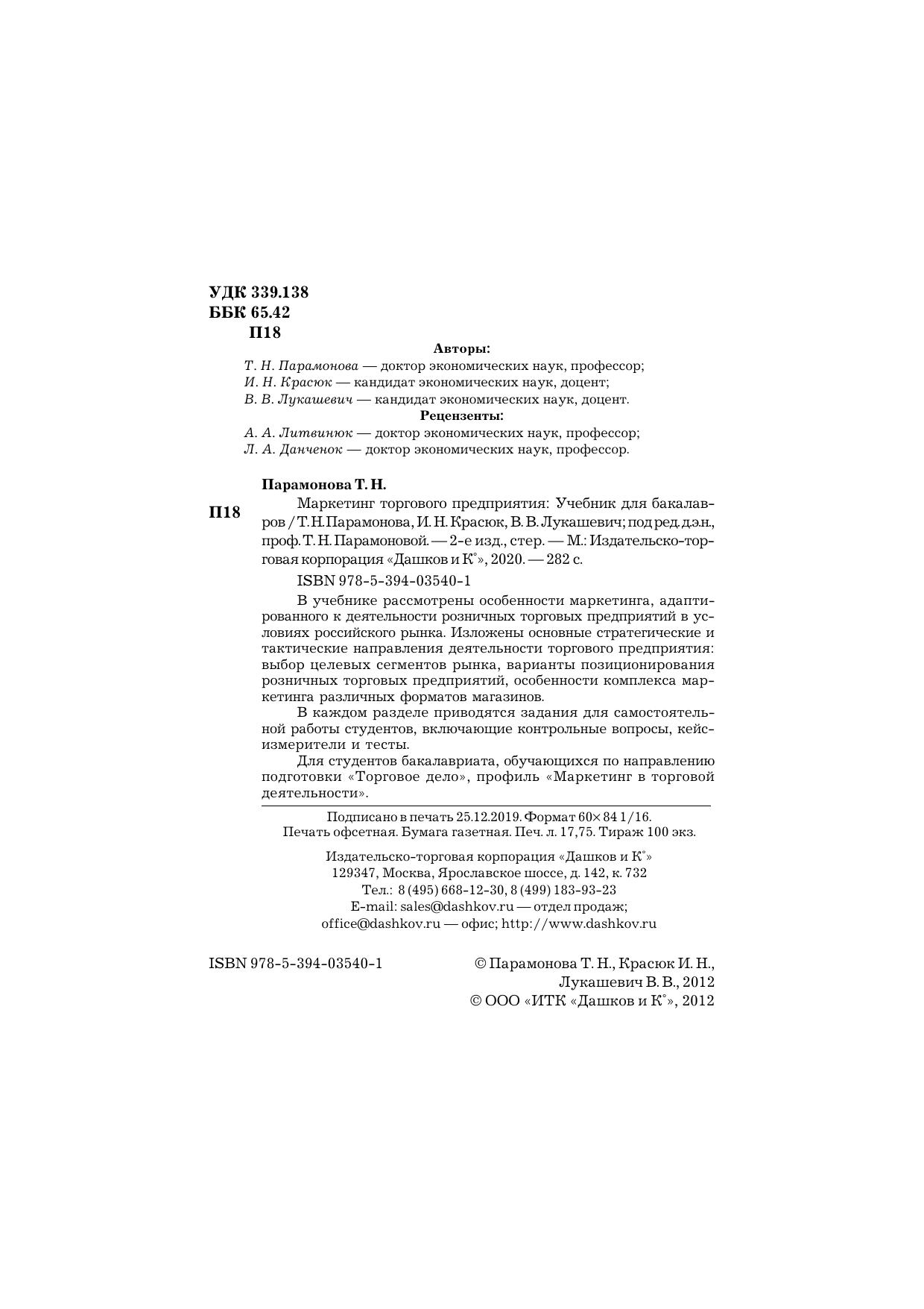 В учебнике рассмотрены особенности маркетинга, адаптированного к деятельности розничных торговых предприятий в условиях российского рынка. Изложены основные стратегические и тактические направления деятельности торгового предприятия: выбор целевых сегментов рынка, варианты позиционирования розничных торговых предприятий, особенности комплекса маркетинга различных форматов магазинов. Большой раздел посвящен разработке маркетинговых коммуникаций розничного торгового предприятия, в том числе организации мерчандайзинга. В каждом разделе приводятся задания для самостоятельной работы студентов, включающие контрольные вопросы, кейс-измерители и тесты. Для студентов бакалавриата, обучающихся по направлению подготовки “Торговое дело”, профиль “Маркетинг в торговой деятельности”, аспирантов, преподавателей экономических вузов, а также маркетологов, менеджеров, экономистов и всех, кто интересуется вопросами маркетинга розничной торговли.