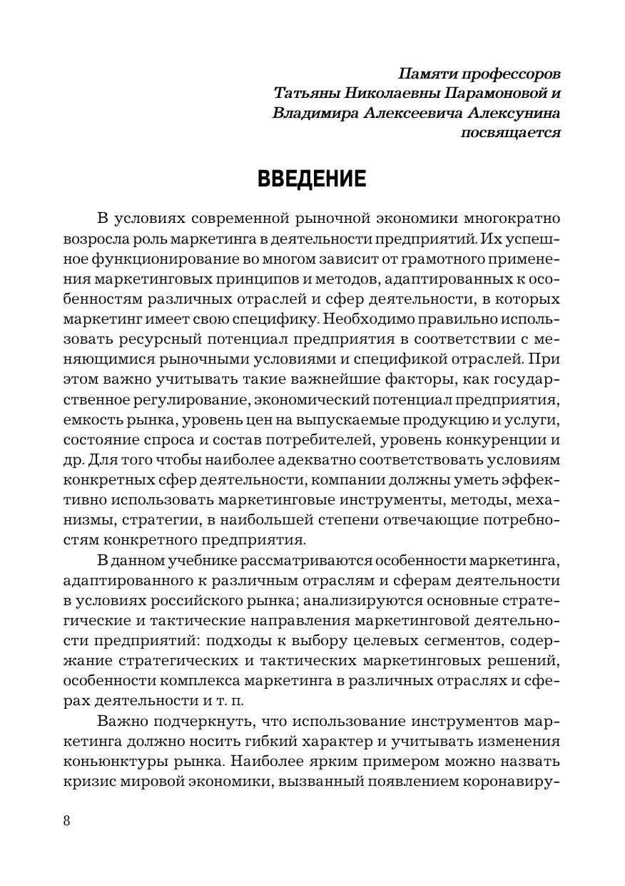 В учебнике рассмотрены особенности маркетинга в различных отраслях и сферах деятельности в условиях современной экономики. Анализируются теория и практика маркетинговой деятельности в промышленности, оптовой и розничной торговле, общественном питании, гостиничном бизнесе, туризме, спорте, сферах транспорта, народных промыслов, культуры, высшего образования и науки, здравоохранения. Для студентов бакалавриата и магистратуры, обучающихся по направлениям подготовки «Менеджмент», «Торговое дело», «Реклама и связи с общественностью» и смежным направлениям подготовки, аспирантов, преподавателей вузов, а также маркетологов, менеджеров, экономистов и всех, кто интересуется особенностями маркетинга в различных отраслях и сферах деятельности.