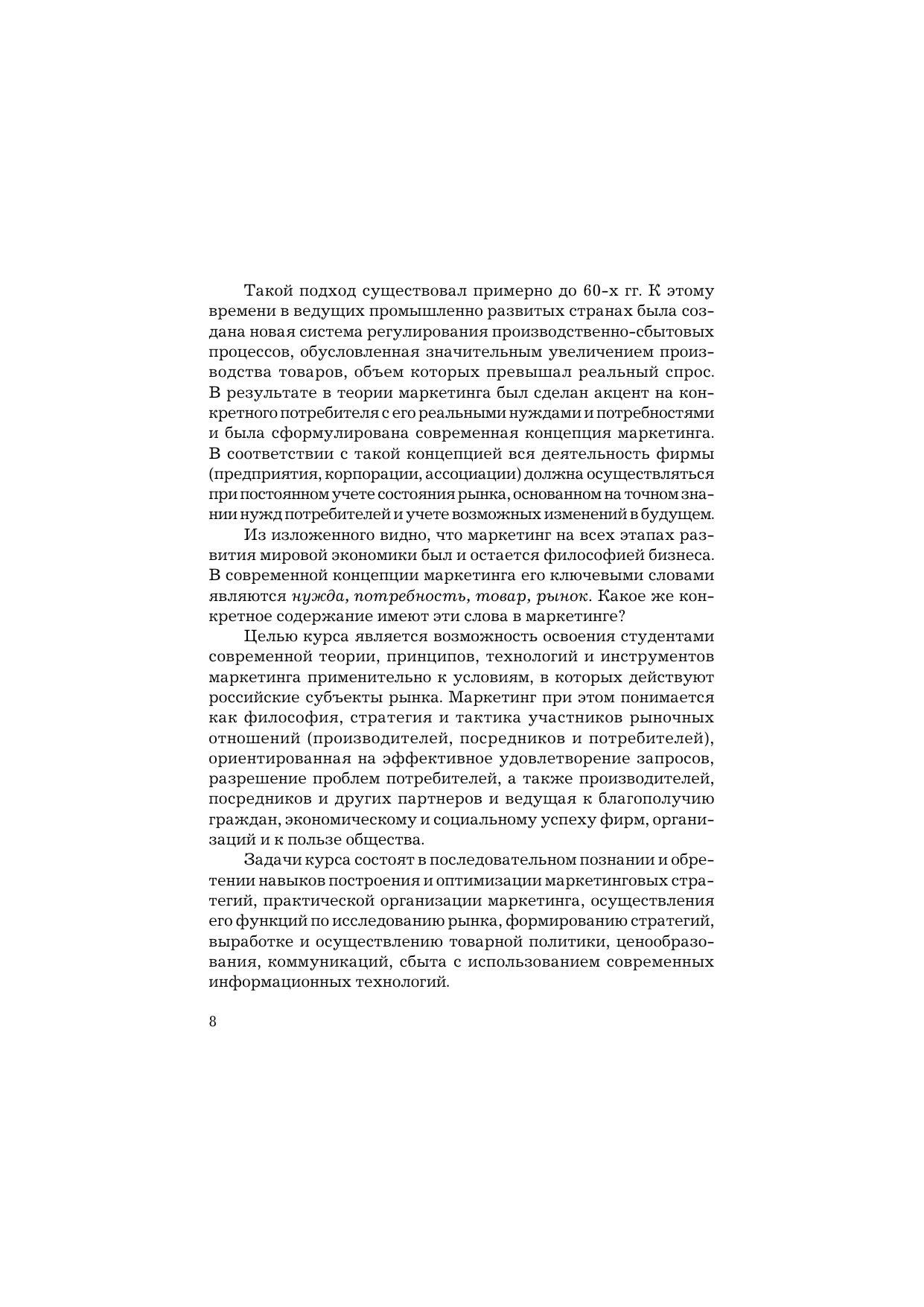 В учебном пособии рассматриваются основные понятия маркетинга, его использование на разных уровнях управления, а также роль в стратегическом планировании. Подробно излагаются вопросы маркетинговых исследований, изучения и анализа рыночной ситуации, разработки комплекса маркетинга, маркетингового планирования и контроля. Для студентов вузов, обучающихся по направлениям подготовки "Экономика", "Менеджмент", специальности "Менеджмент организации", а также для специалистов-практиков.