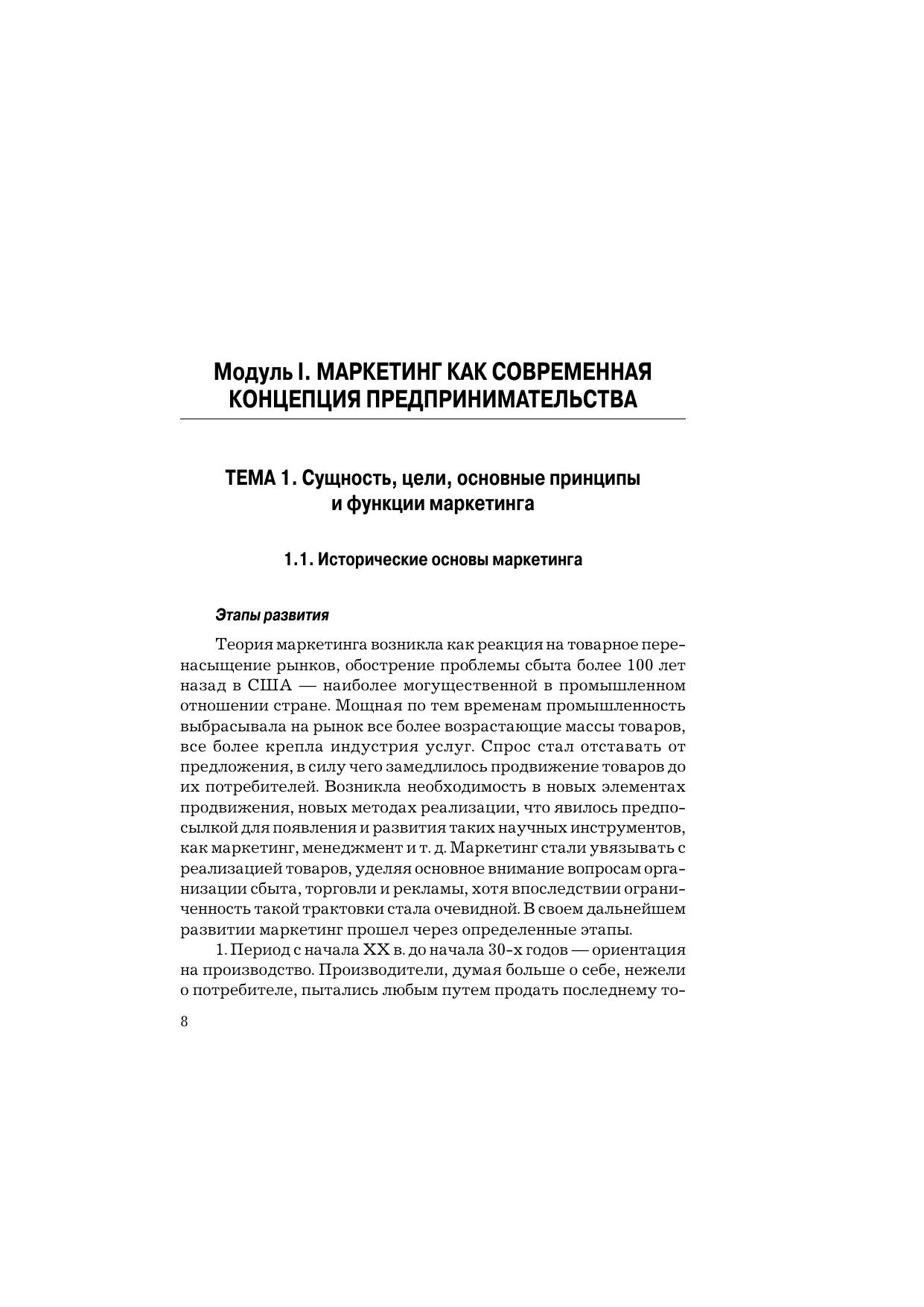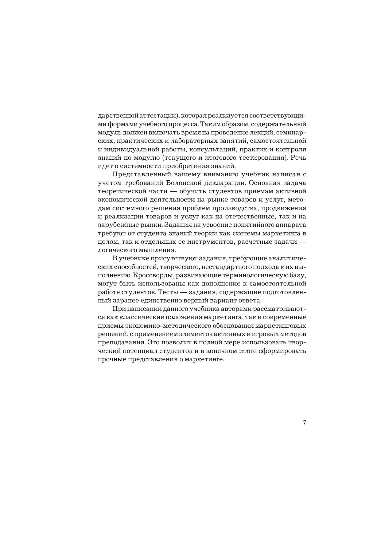В учебнике изложены теоретические и методические основы организации маркетинга как современной концепции предпринимательства. Концептуальная структура учебника построена с учетом требований Болонской декларации, согласно которой при организации учебного процесса содержание дисциплины формируется как система модулей. В контексте маркетинга освещены товарная и ценовая политика, маркетинговые решения в сбытовой системе, организация коммуникативных процессов. Особое внимание уделено управлению маркетинговой деятельности, информационному обеспечению маркетинговых решений, сегментации рынка и позиционированию товара как средству повышения эффективности взаимодействия с потребителями. К каждому модулю даны контрольные вопросы и практические задания в виде тестов, позволяющих оценить знание теоретического материала, расчетные задачи, кроссворды для усвоения основных терминов, а также имитации ситуационных задач. Для студентов и аспирантов экономических вузов, обучающихся по направлению подготовки «Экономика».
