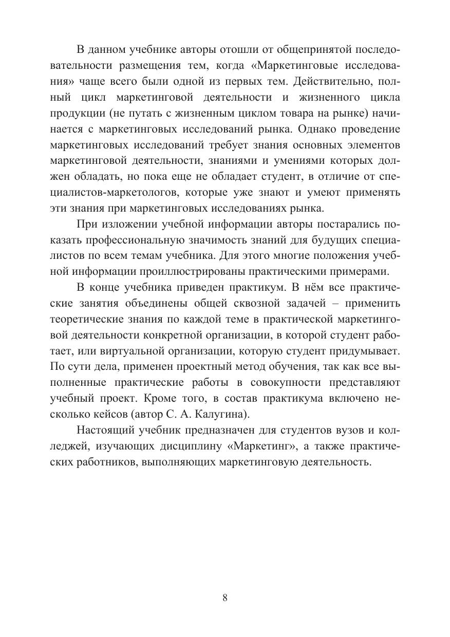 В учебнике рассмотрены теоретические и методологические основы маркетинга. Концептуальная структура издания построена с учетом профессионального ориентированного подхода, регламентированного в профстандарте 08.035 "Маркетолог". Подробно рассмотрены потребности как объект маркетинга. Особое внимание уделено средствам маркетинга: товарам, сбытовой, ценовой и коммуникативной политикам. Проанализированы традиционные и интегрированные маркетинговые коммуникации, стратегии маркетинга, показаны их достоинства и недостатки. В конце каждой темы даны вопросы для самоконтроля. В практикуме приведены методики проведения практических занятий с использованием проектного метода и анализа профессионально значимых ситуаций в форме ситуационных задач и кейсов.