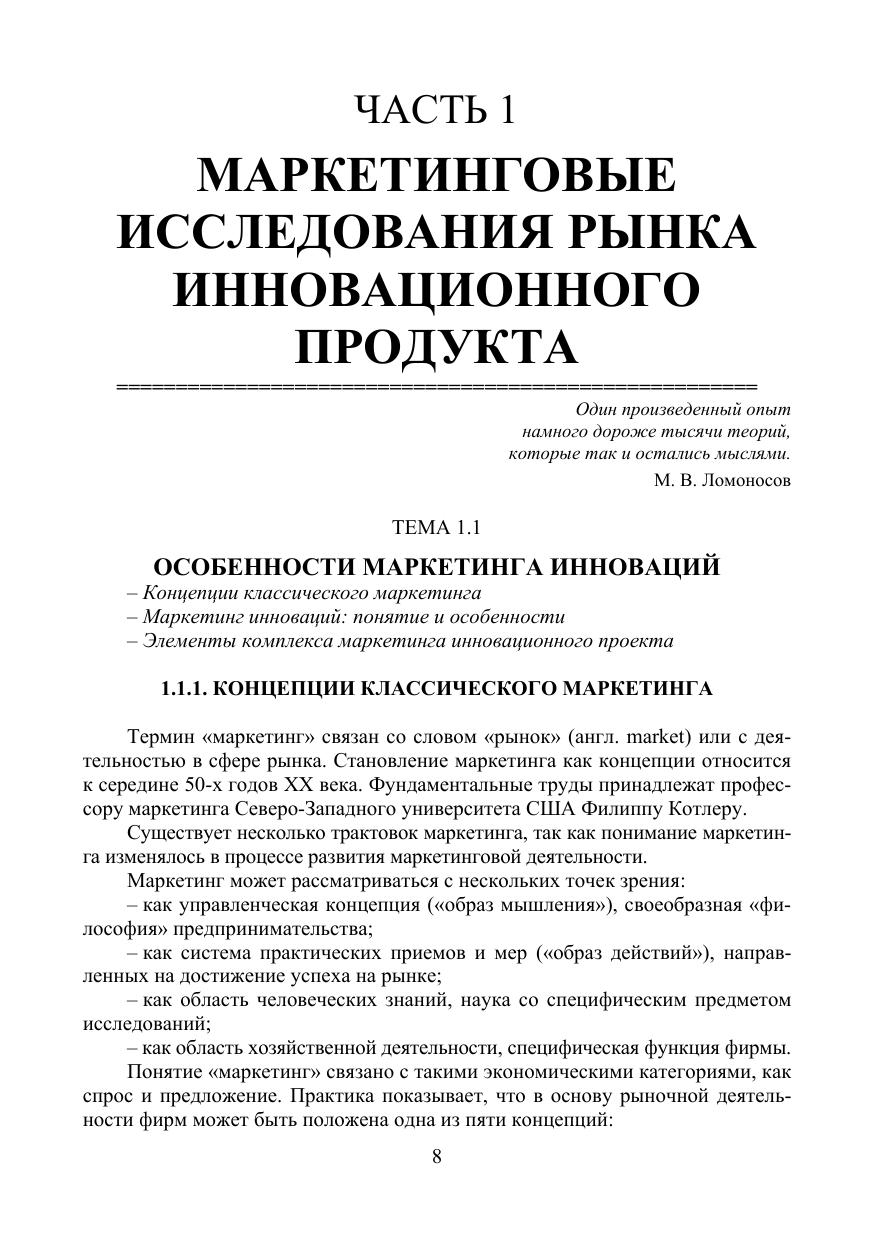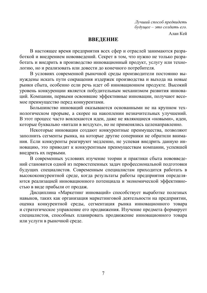 Учебное пособие состоит из двух частей — теоретической и практической, охватывающих следующие темы: понятие и особенности маркетинга инноваций, виды спроса на инновационный товар, конкуренция в маркетинге инноваций, сегментация и методы исследований в маркетинге инноваций. Целью данного издания является формирование у обучаемых комплексного понимания науки об инновациях и практическое знакомство с возможностями маркетинга инноваций. Подготовлено в соответствии с требованиями федерального государственного образовательного стандарта высшего образования по направления подготовки «Менеджмент». Предназначено для студентов и магистрантов технических направлений подготовки, изучающих дисциплину «Маркетинг инноваций», а также для специалистов, занимающихся разработкой и продвижением инновационных проектов.