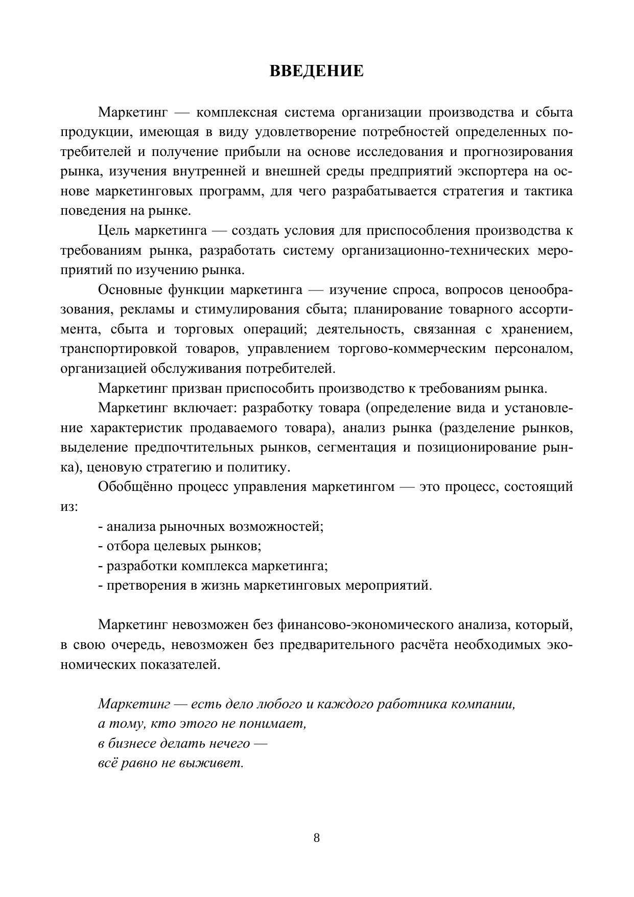 Книга рассчитана как на практикующих специалистов по маркетингу и руко-водителей подразделений маркетинга и сбыта фирм, так и на студентов экономи-ческих факультетов. Впрочем, книга была бы полезна также и руководителям коммерческих организаций — особенно тем из них, кто со знанием дела контро-лирует своих подчинённых в финансово-экономическом секторе деятельности предприятия.