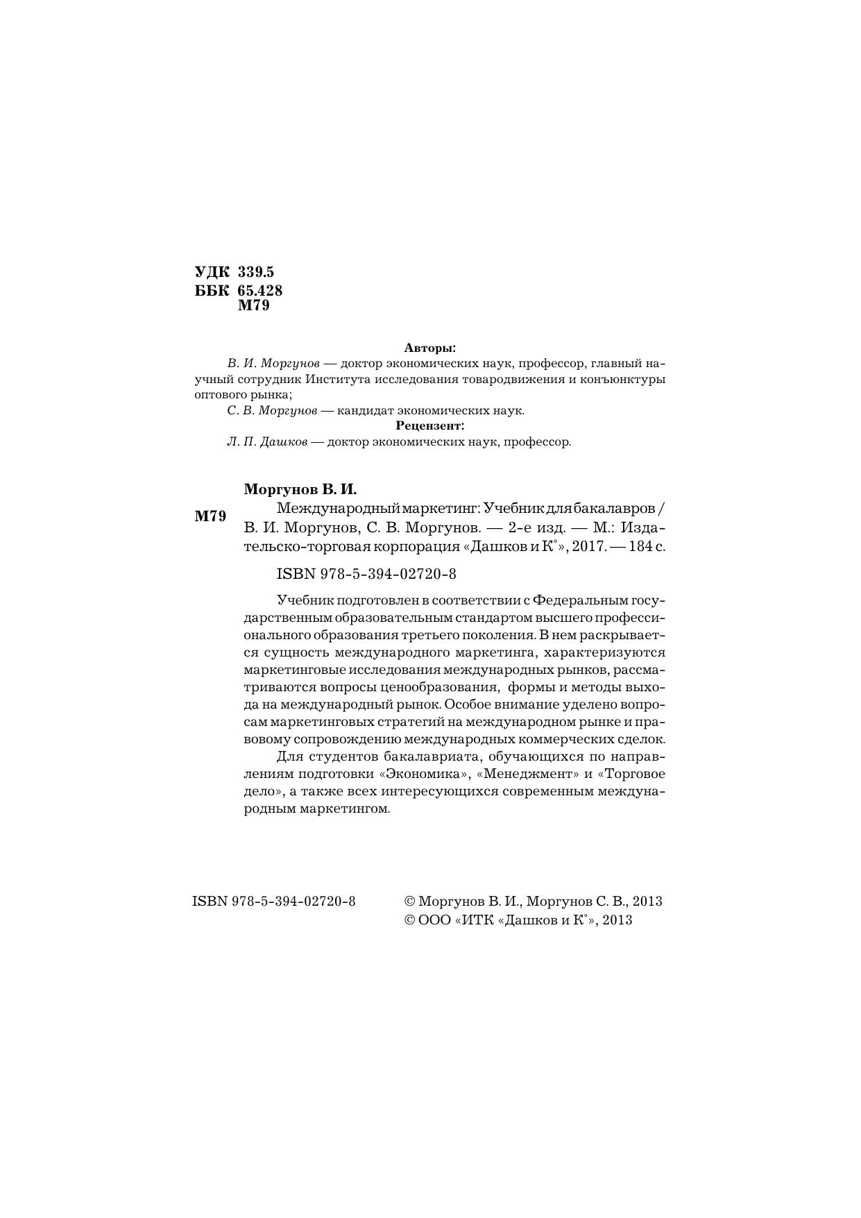 Для студентов бакалавриата, обучающихся по направлениям подготовки «Экономика», «Менеджмент» и «Торговое дело», а также всех интересующихся современным международным маркетингом.